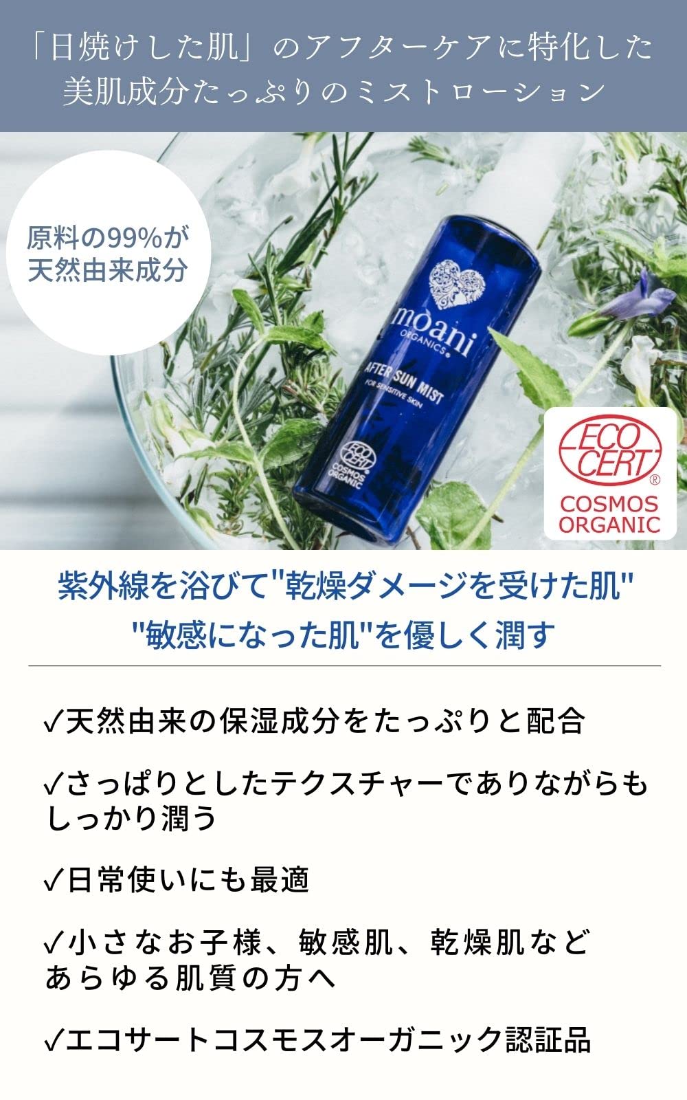 モアニ・オーガニクス 保湿化粧水ミスト 100ml アフターサンミスト 99% 天然由来成分 日焼け ミストローション