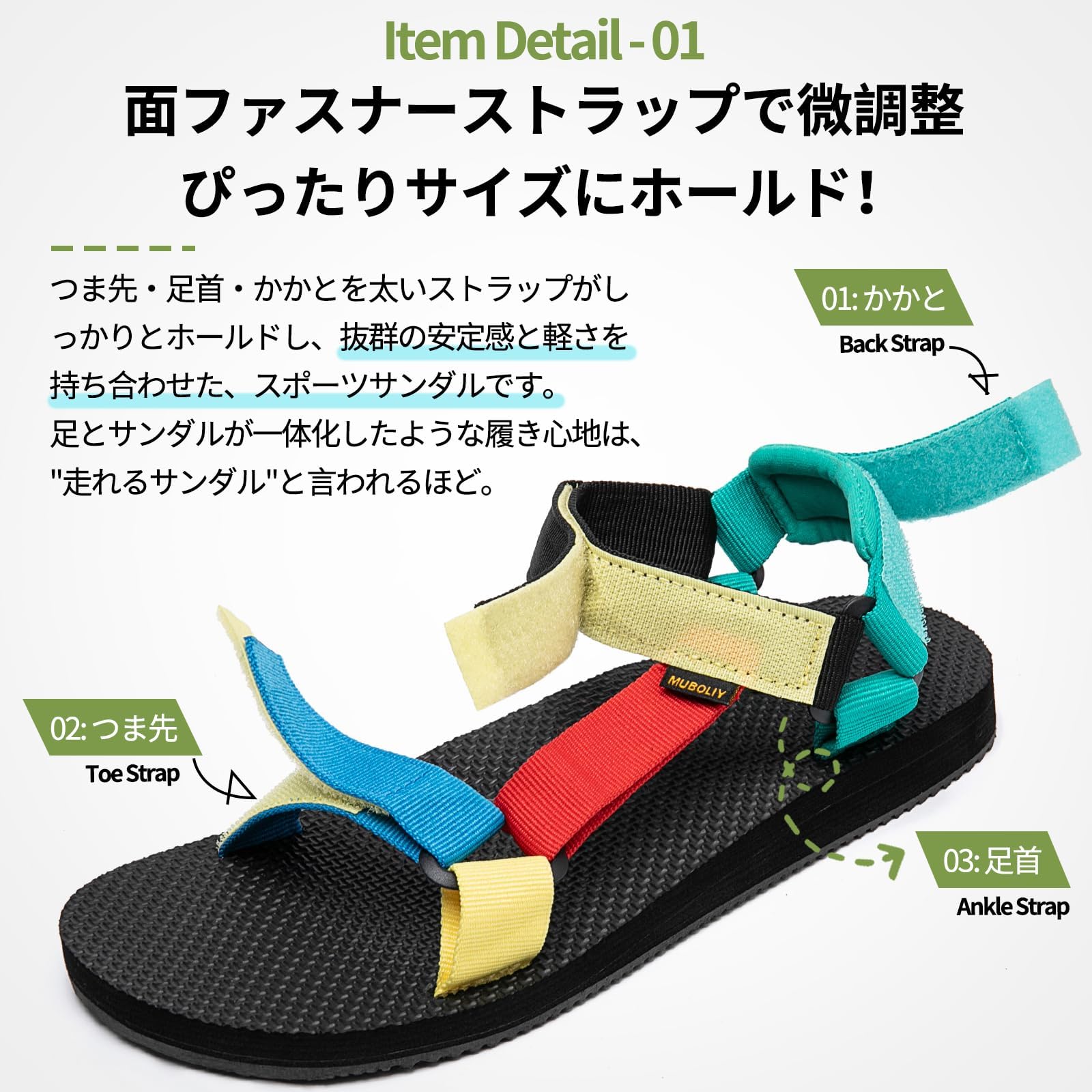 「歩きやすさ」「フィット感」「耐久性」にこだわり機能性を追求したスポーツサンダル。シンプルなプロダクトだからこそ、実現できるクオリティと安心感。どんなシーンにも溶け込むデザインを形にしました!夏と言えばアウトドアアクティビティ、スポーツ、川遊び、キャンプ・BBQ、そしてフェスなどの音楽シーンも楽しめるように履きやすくてタフなサンダルです!