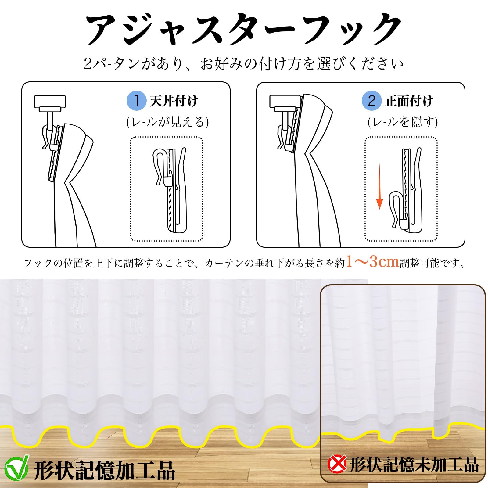 お手入れ便利:洗濯機で丸洗い可能なので、お手入れは簡単です。自巻きのヘム仕様、洗濯の後でも、裾がばらばらにならなく、美しい垂れ下がり感を维持します。ドレープを美しく見せるアジャスターフックの设计、取り付けは便利で、1-3cmの高さを调节することができます。