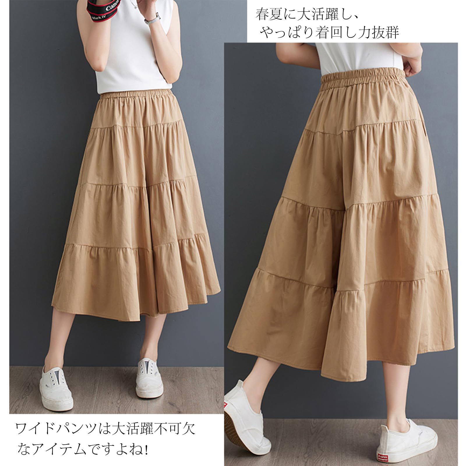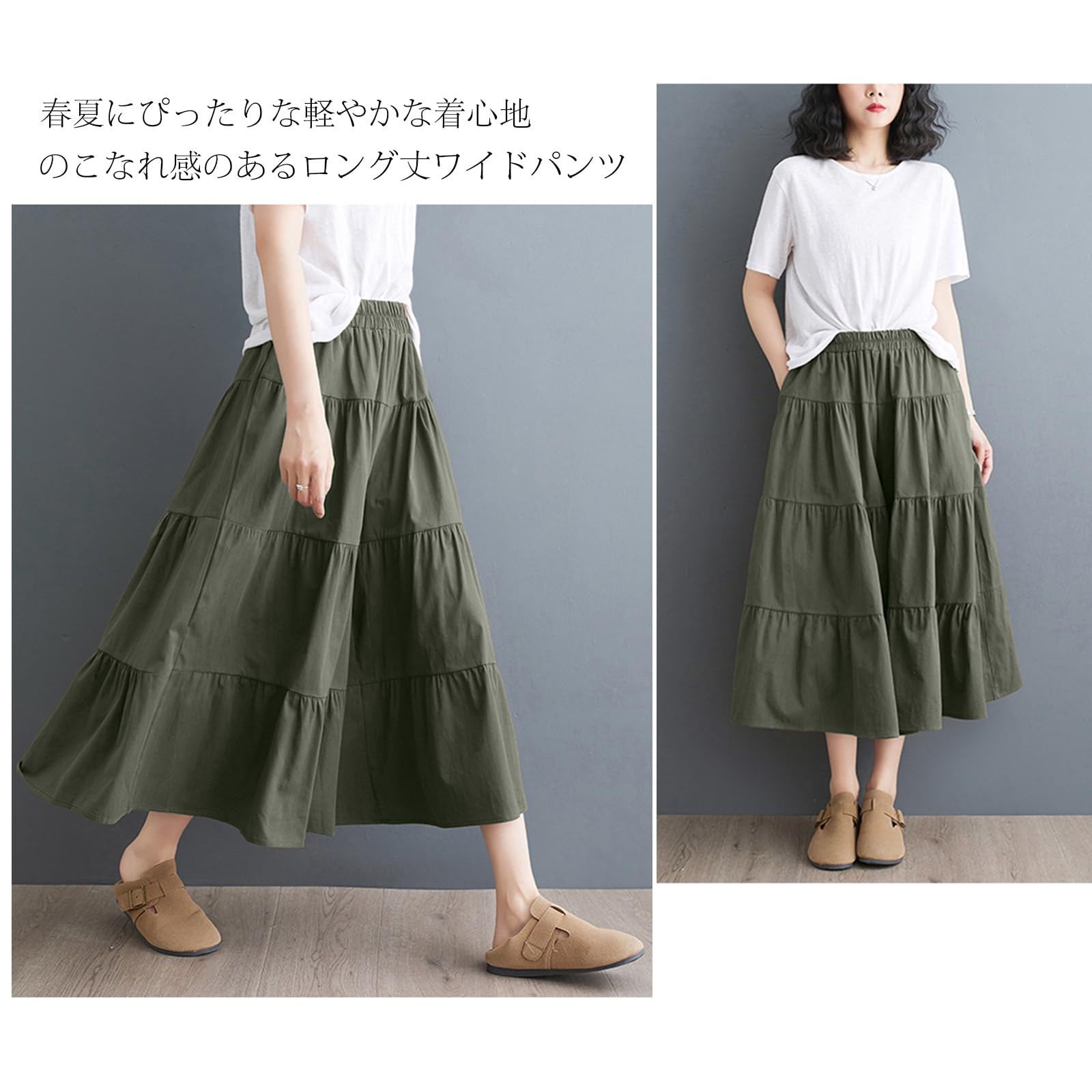【2022最新】[POGCZMKK] パンツ レディース ワイドパンツ ロングパンツ フレアパンツ ズボン ボトムス 切り替え ティアード リラックスパンツ ウエストゴム ロング丈 9分 ゆったり 体型カバー ファッション カジュアル 通勤 OL 春 夏 秋