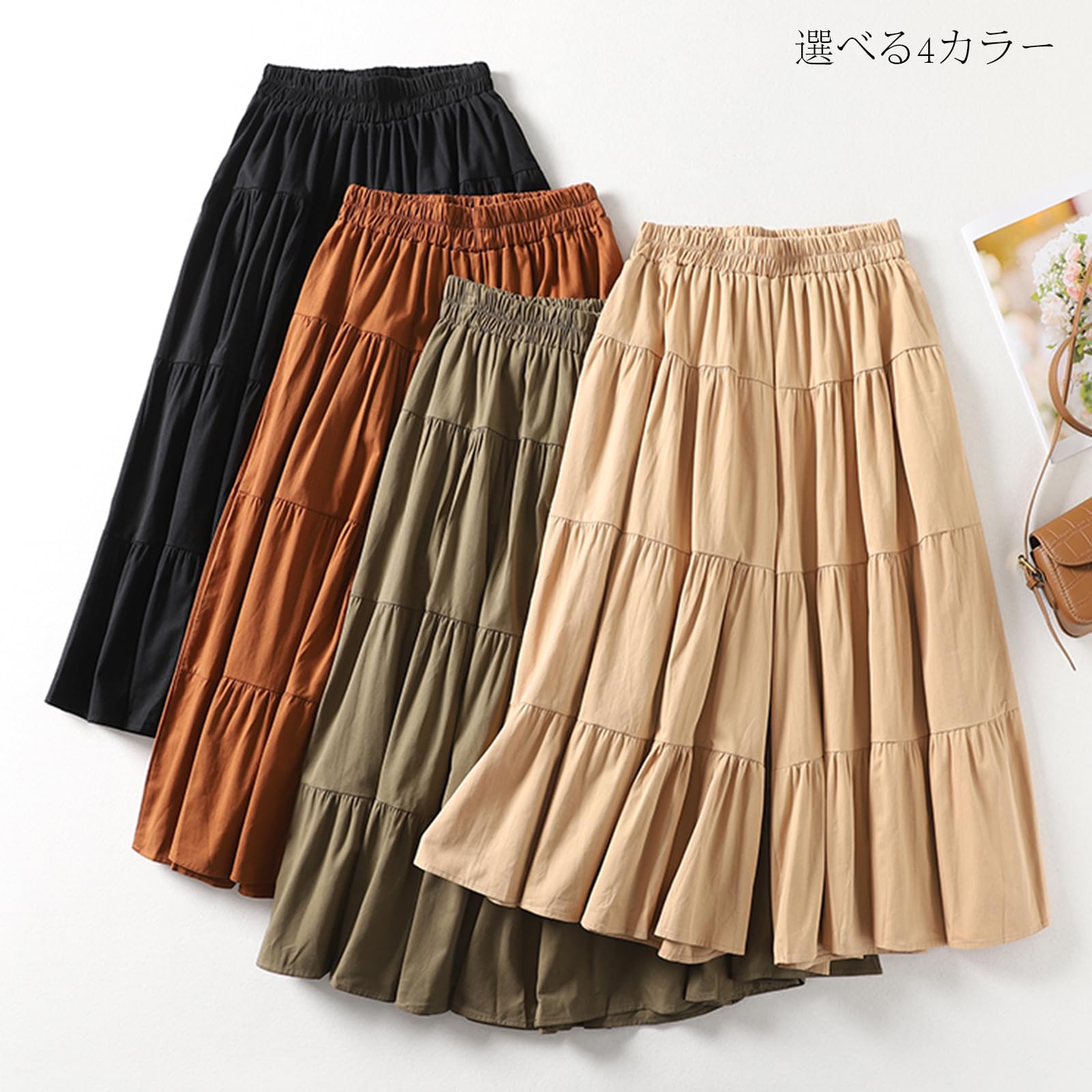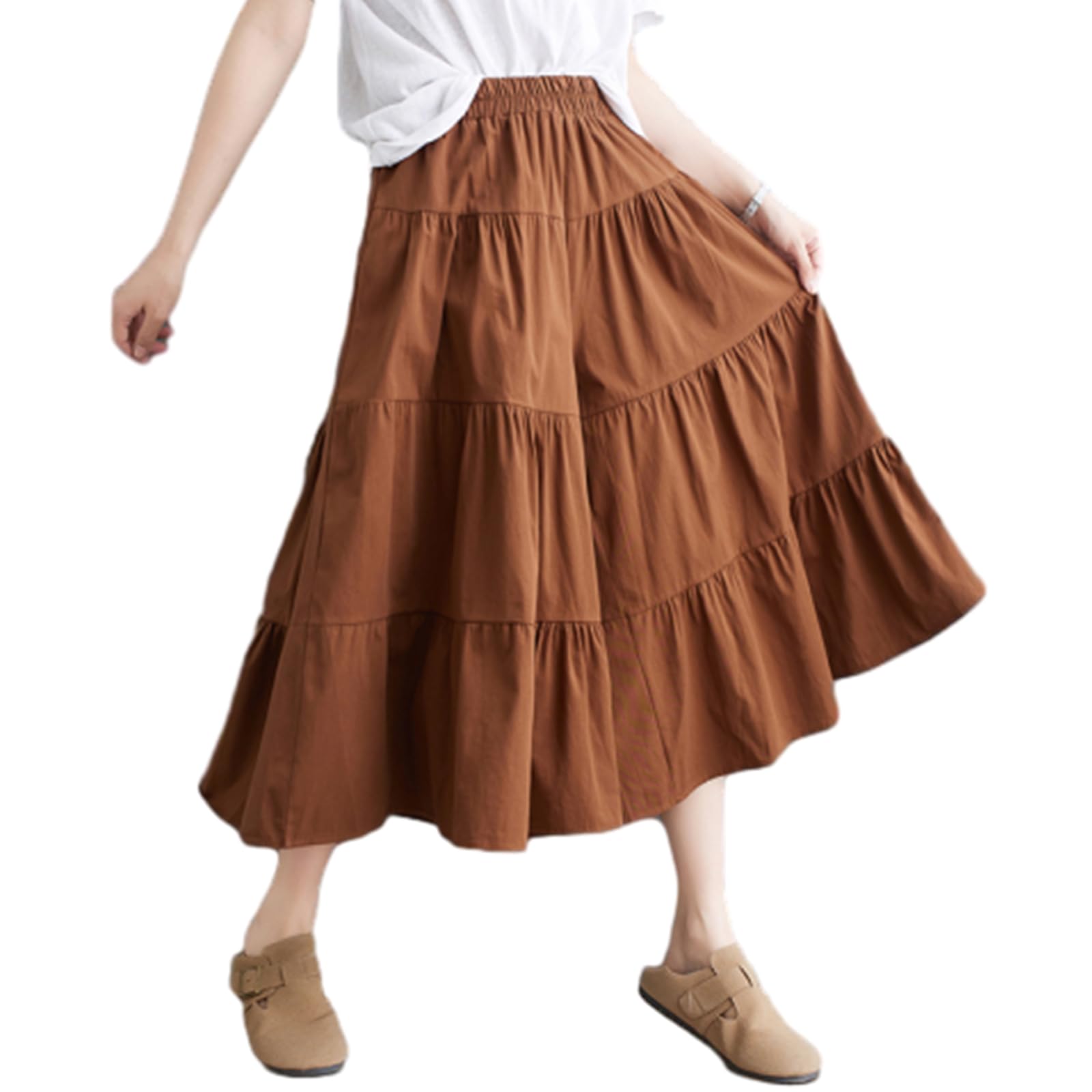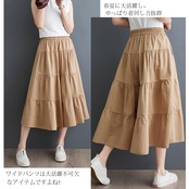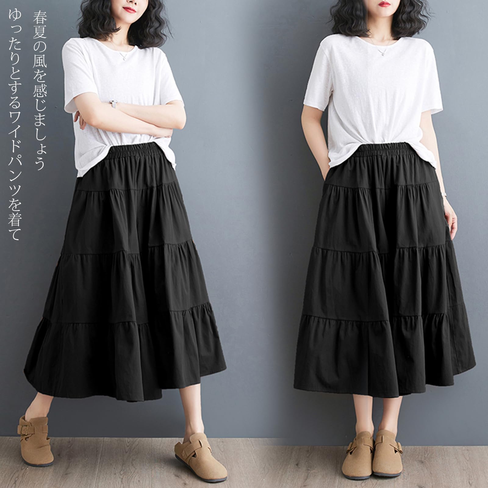 [POGCZMKK] パンツ レディース ワイドパンツ ロングパンツ フレアパンツ ズボン ボトムス 切り替え ティアード リラックスパンツ ウエストゴム ロング丈 9分 ゆったり 体型カバー ファッション カジュアル 通勤 OL 春 夏 秋
