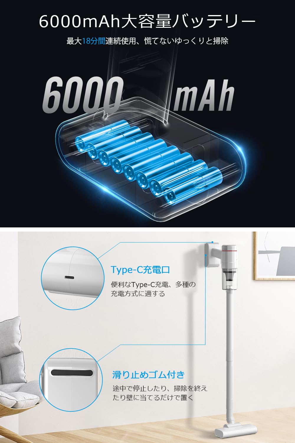 【たった660gの軽量ボディでどこでも楽々操作】超軽量設計のコードレス掃除機は、片手でも楽に扱えるため、家中の隅々までストレスなく掃除ができます。内蔵された大容量バッテリーにより、一度の充電で最大35分間の連続使用が可能。さらに、Type-C充電ポートを採用しているので、家庭内だけでなく車内でも便利に充電できます。長時間の使用でも疲れにくく、女性やお年寄りにも安心してお使いいただける設計です。