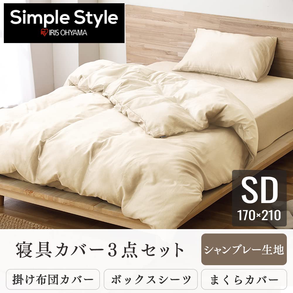 【在庫処分】【寝具カバー3点セット セミダブル】 アイリスオーヤマ 速乾シャンブレー生地 掛け布団カバー + ボックスシーツ + 枕カバー 43×63cm ネイビー