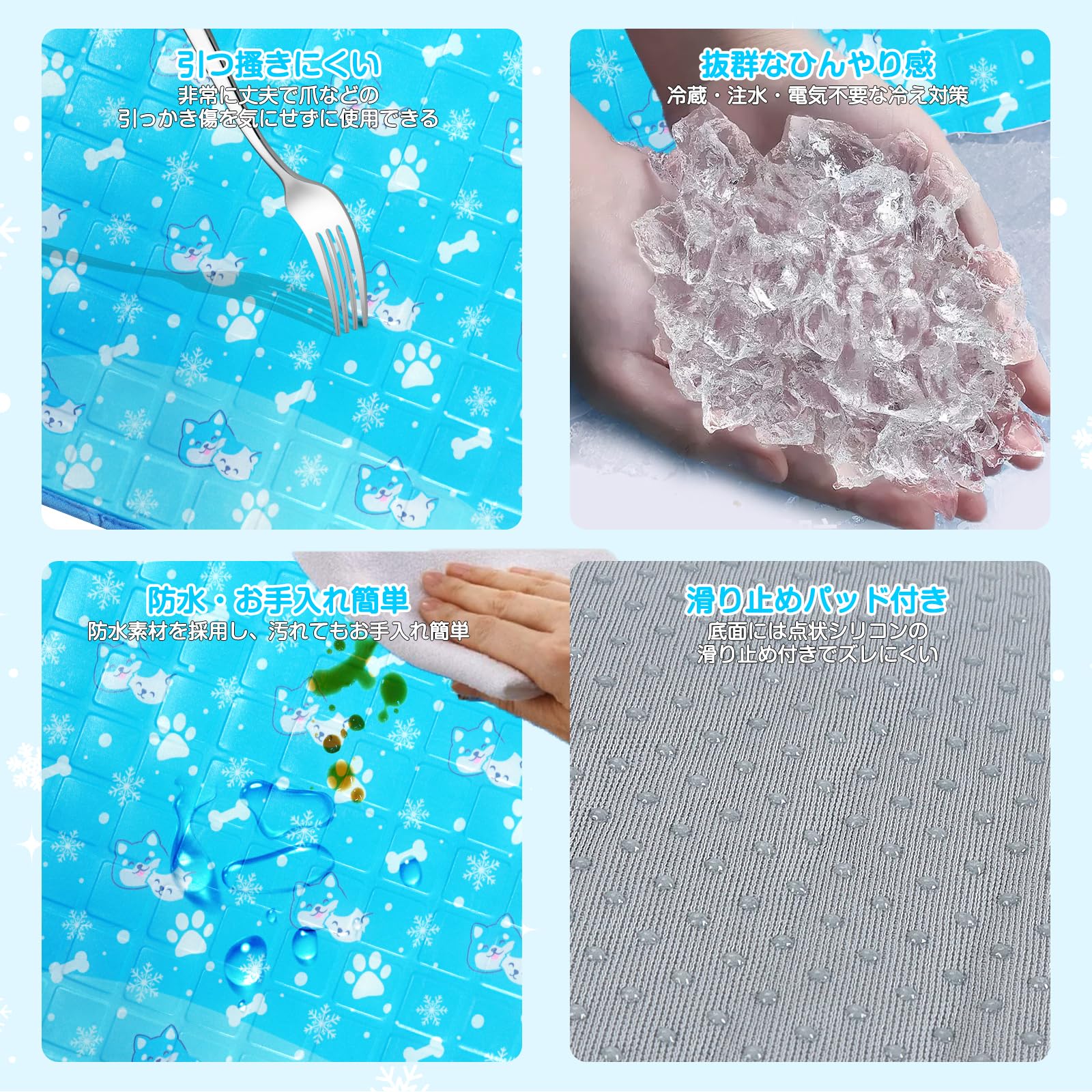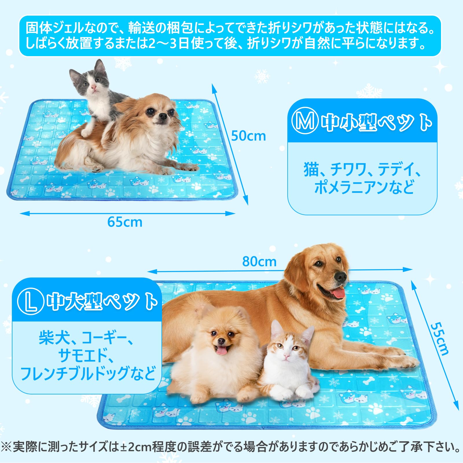 【様々なシーツで大活躍】普通のマットより丈夫で、床やペットベッドなどに敷いて使います。犬、猫、ウサギなどの動物だけでなく、人間にも使えます。PC冷却マット、椅子冷却マット、車座席シート、クール枕などとしても活躍でき、ペットと一緒に涼しい夏を過ごせましょう。サイズ選べるのでどんな体型のペットも対応できる冷感ジェルマットです。ペットの大きさに合わせてサイズ選んでいただけます。