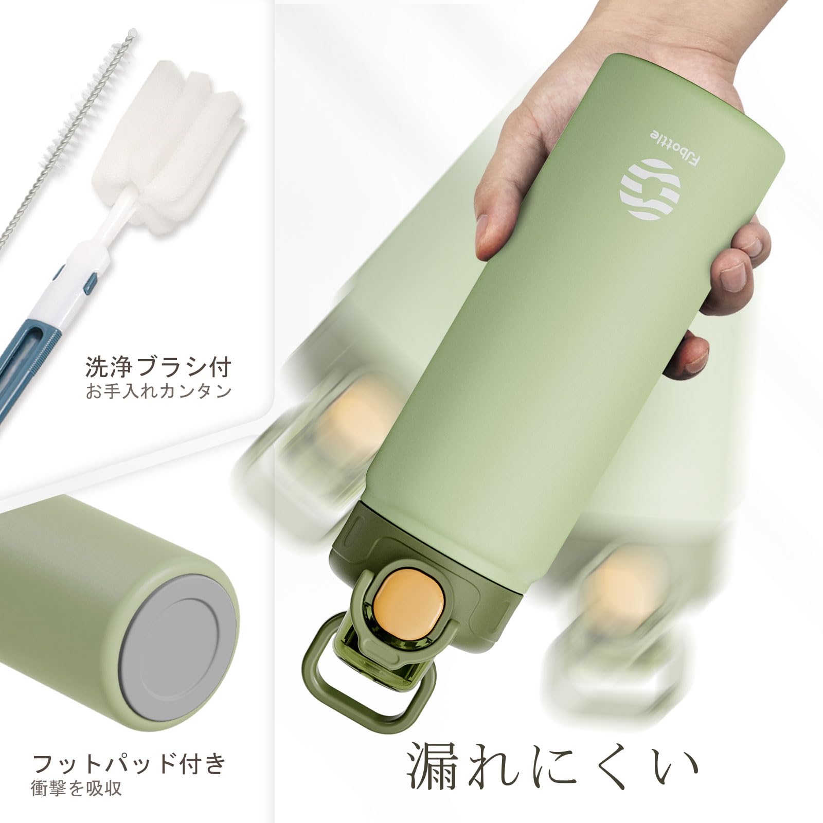 【特価セール】FJbottle 水筒 0.72リットル 真空断熱 マグボトル(ハンドル付き) 第2世代 2ウェイボトル ストロー ワンタッチ 保温 保冷 洗いやすい 持ち運び マグ ボトル 広口 ステンレスボトル 洗浄用スポンジ付き ストロー用ブラシ付き 女の子 男の子 おしゃれ 大人 子供 グリーン