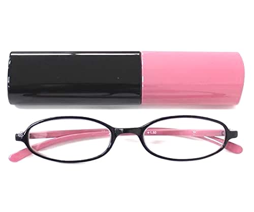 [Bayline] ベイラインリーディンググラス オーバルスリムフレーム バイカラー 1650C +2.50 ブラック×ピンク ハードケース レディース おしゃれ老眼鏡
