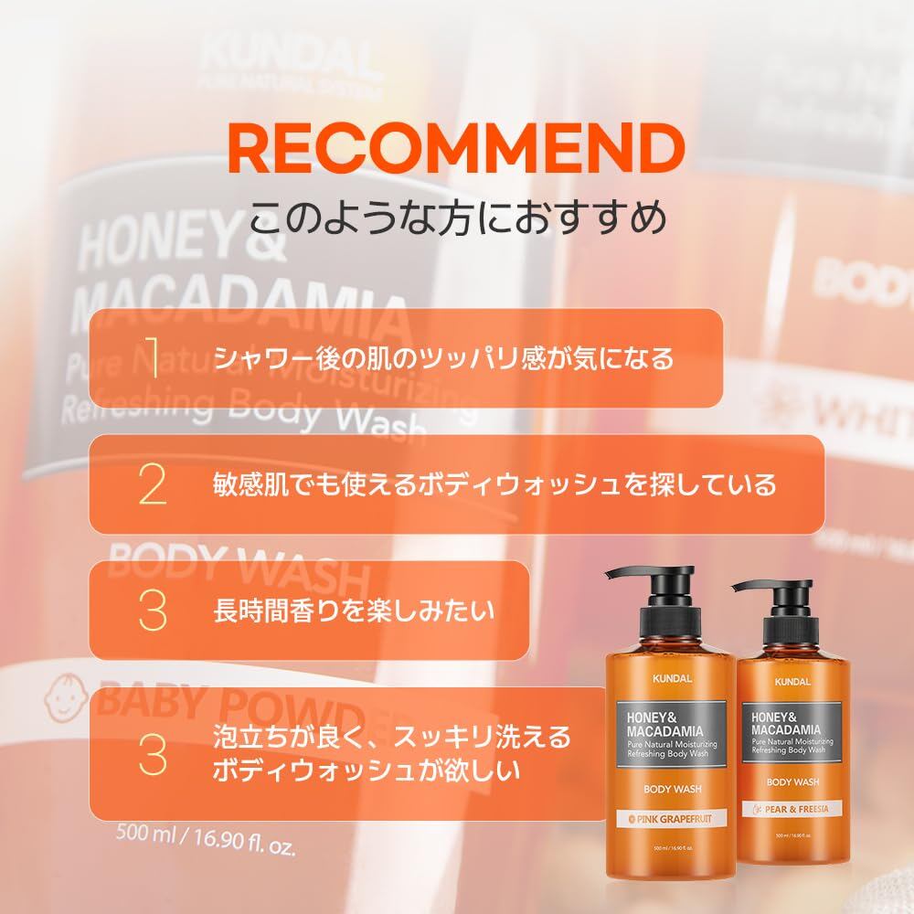 【KUNDAL/クンダル】ボディウォッシュ (500ml・ボトル) #アカシアモリンガ #ハニー&マカダミア #アロエ成分配合 #角質 #保湿 #ツヤ肌ケア #香水ボディウォッシュ