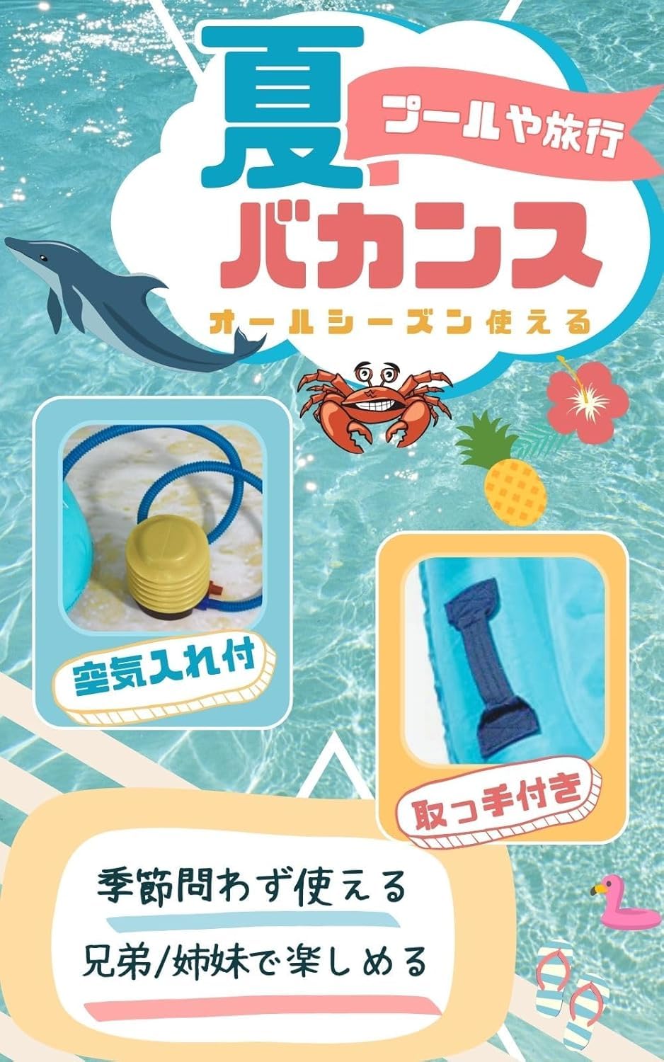 こちらのうきわフロートとくうきいれのセットは、空気入れボード式ですの海の上・プールの上などプール水遊びの便利アイテムです。仲間同士・お友達同士・家族同士・職場仲間・学校の友達同士など複数で遊びにいく時にも複数のセットですので、忘れた時用・予備用などにお使いいただけます。