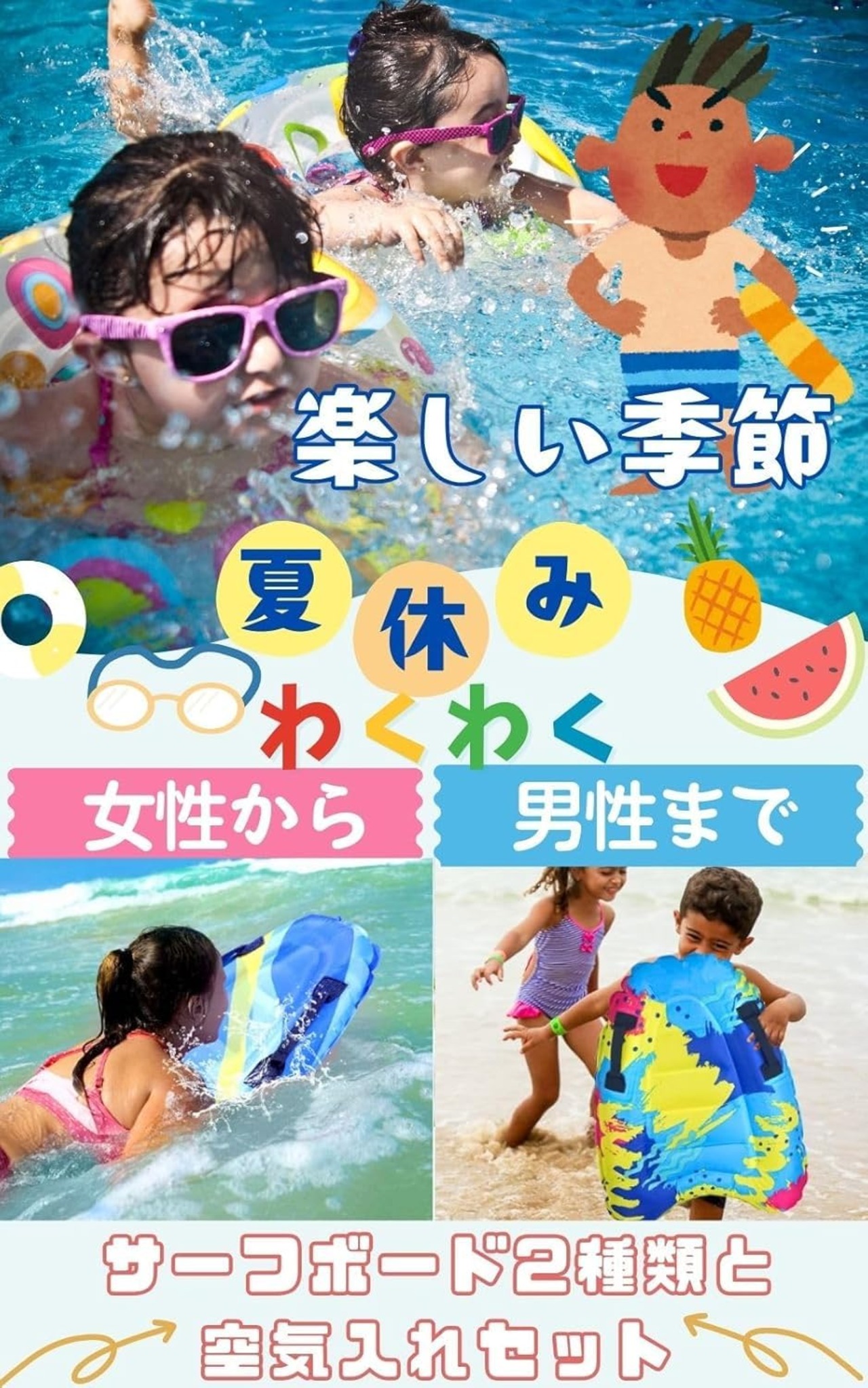 こちらの浮輪ボート浮き具とくうき入れのセットは、プール遊び・海水浴場遊び・ながれるプール・海遊び・水遊び・お風呂遊びの水遊びグッズとなっております。空気入れも入っているため、その場ですぐに空気を膨らませてみず遊びを楽しんでいただけます。片付け押しやすく、リラックスしやすい水上サーフボードの形フロートですので夏場の水遊び道具として、自宅用・友達用・旅行用・家族用・社員旅行用・海外用などのシーンのプール遊び用品としてお使いください。