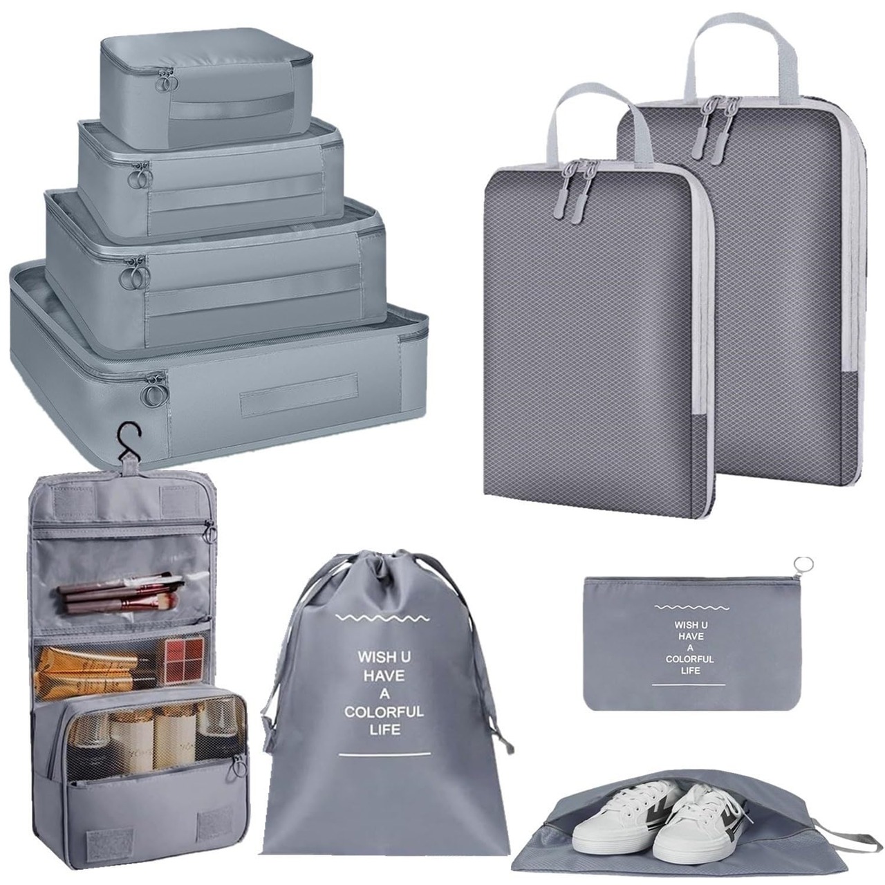 トラベルポーチ 圧縮 10点セット 旅行用ポーチ スペース節約60% 旅行用圧縮袋 【2024年最新型】旅行圧縮バッグ パッキングポーチ 圧縮ポーチ 洗面用具 旅行用 撥水加工 衣類仕分け 温泉 出張 海外 修学旅行 靴用 下着収納 (グレー)