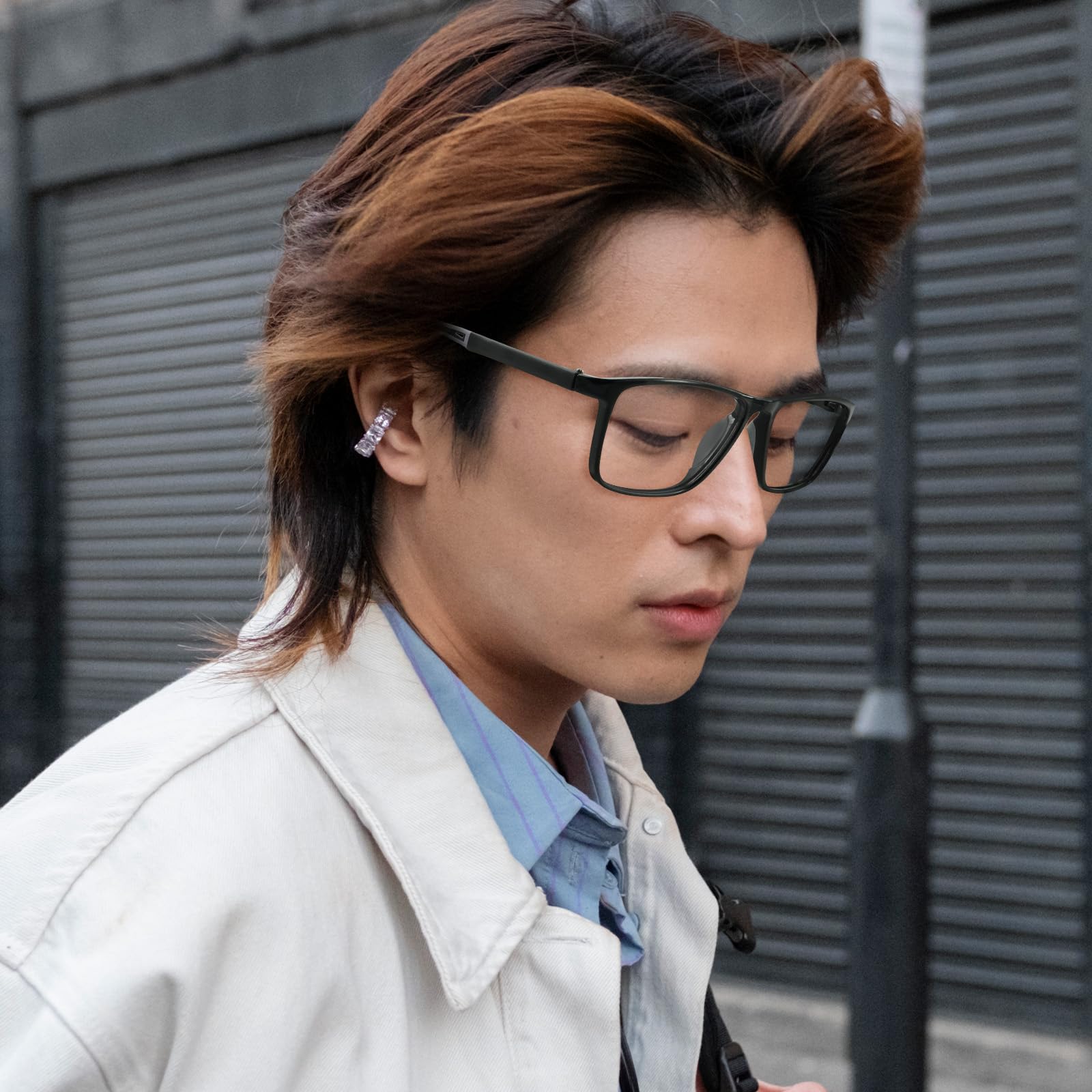 【高級感のあるデザイン】本商品は、アップグレードされた生活スタイルに合わせた高度な近視眼鏡です。その特徴的なのは、シンプルながら高級感満点のダークブラックの矩形フレームです。このデザインは、多様な顔型に合わせ、優雅かつ洗練された印象を与えます。無論、日常の着用に最適で、職場やパーティーでも自信を持ってお着用いただけます。