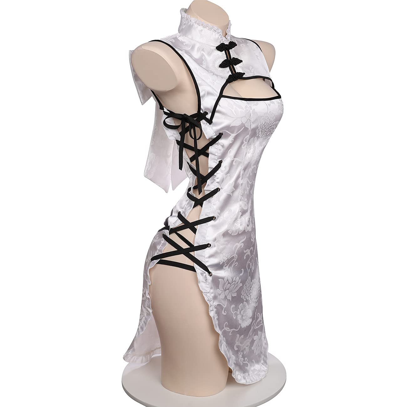 [SENMHS] チャイナ服 チャイナドレス チャイナ ミニ 中国 コスプレ コスチューム 中華 チャイナ風 可愛いコスプレ セクシー ミニ ボディコン 衣装 仮装 ハロウィン 写真会 白