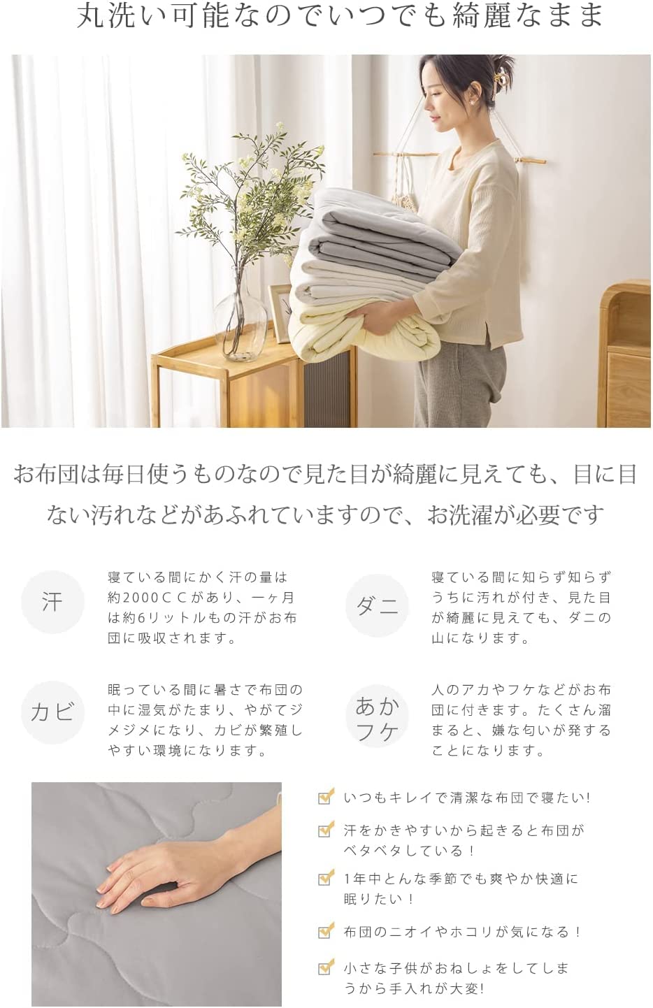 製品の手入れも簡単で、洗濯機で丸洗い可能です。