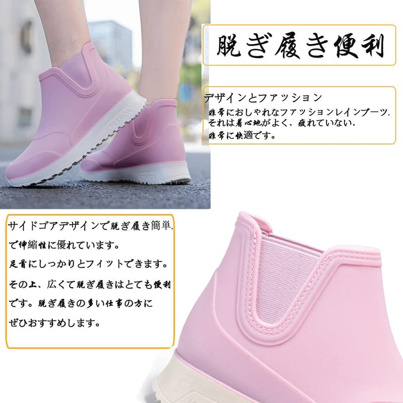 【オシャレな レインブーツ】シンプルなデザインで、どんなコーデにも合わせやすいレディースレインシューズで、フォーマルでもカジュアルでも場所を問わずにお使いいただけます。時代の好尚に合う美しさ、防水性はもちろん、カジュアル性を配慮して、晴れの日でも履きたいファッションな レインシューズ です。