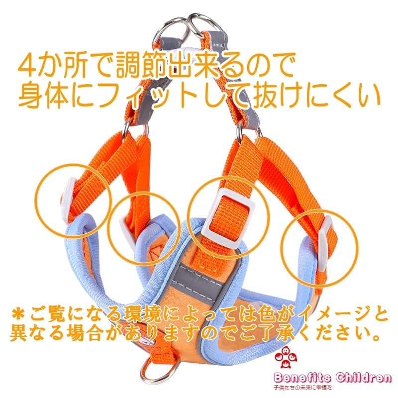 【調整可能】:首と胸に4方向に調整可能なストラップがあり、成長に合わせたフィット感が得られます。