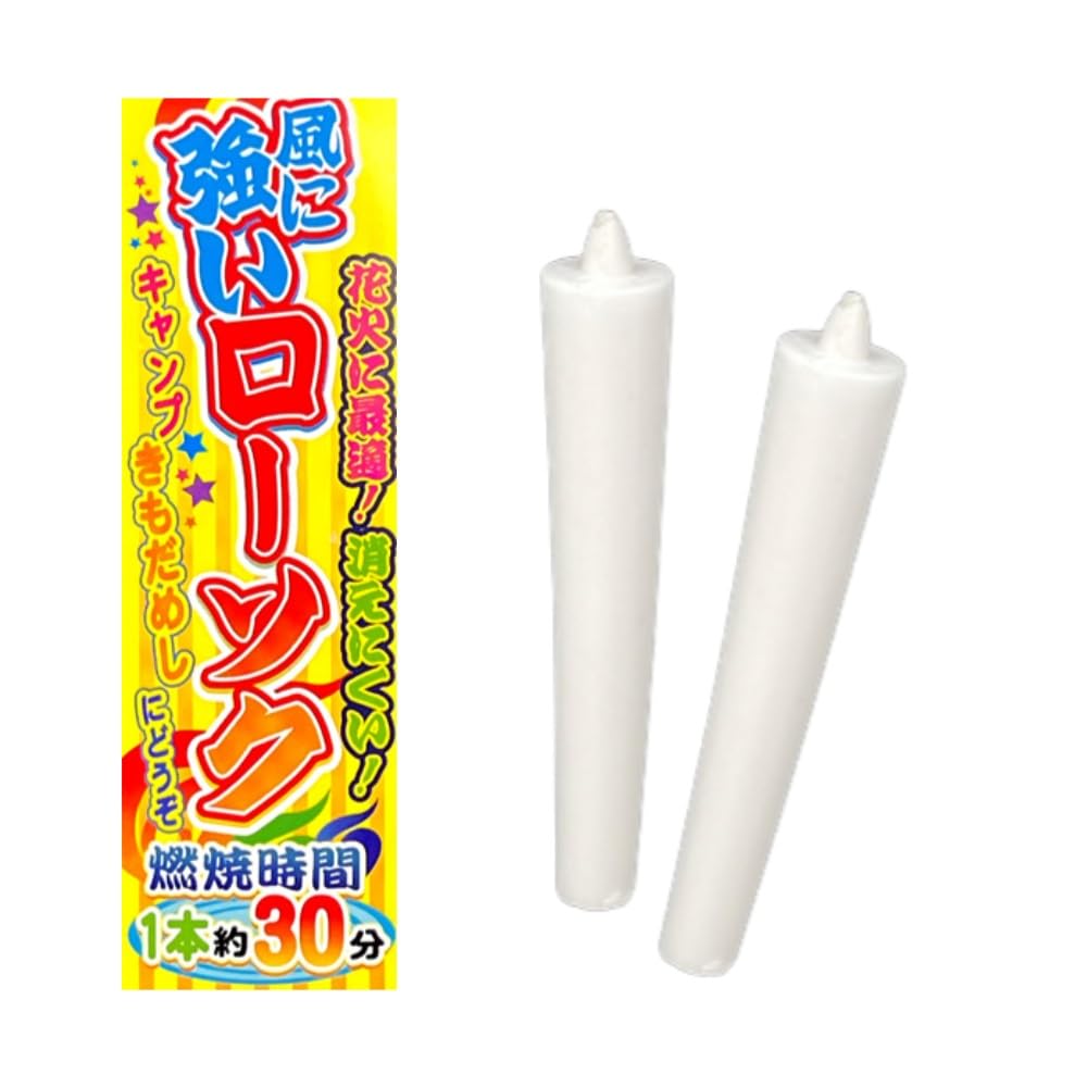 【在庫処分】風に強い ローソク 2本入り 燃焼時間約30分 屋外専用 キャンプ 花火に最適 (1)