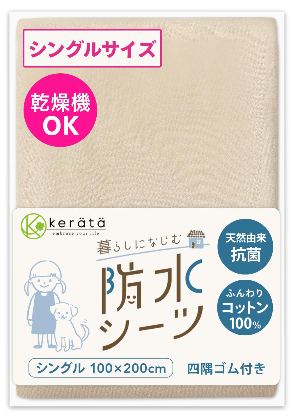 (ケラッタ) 防水シーツ おねしょシーツ 丸洗い&乾燥機OK 綿100% 抗菌 防ダニ シート ベビーシーツ [d ベージュ (1枚)シングル 100×200cm]