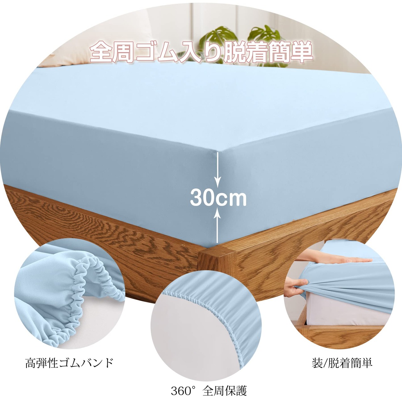360°全周保護:箱型でしっかりとマットレスを包み、着脱簡単です。側面は幅35cm弾性メッシュクロスで360°マットレスを包み、滑り止めできます。ベッド、マットレス、 敷き布団にぴったりフィットして、いろいろ使えます。寝ている間で自由に寝返っても大丈夫です。朝シーツの整理時間を節約できます。