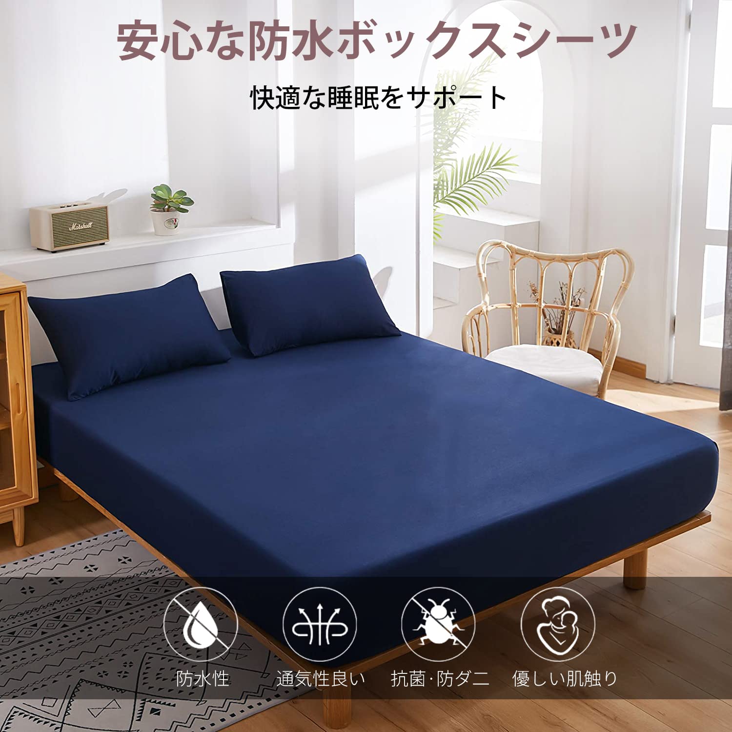ボックスシーツ 防水シーツ 防水タイプ ベッドカバー ベッドシーツ マットレスカバー マットレス・敷き布団カバー 介護用シーツ おねしょシーツ パイル地 肌に優しい 寝汗対策 ペット用 ベビー 洗える 抗菌 防臭 通気 防ダニ (セミダブル・120X200cm ネイビー)