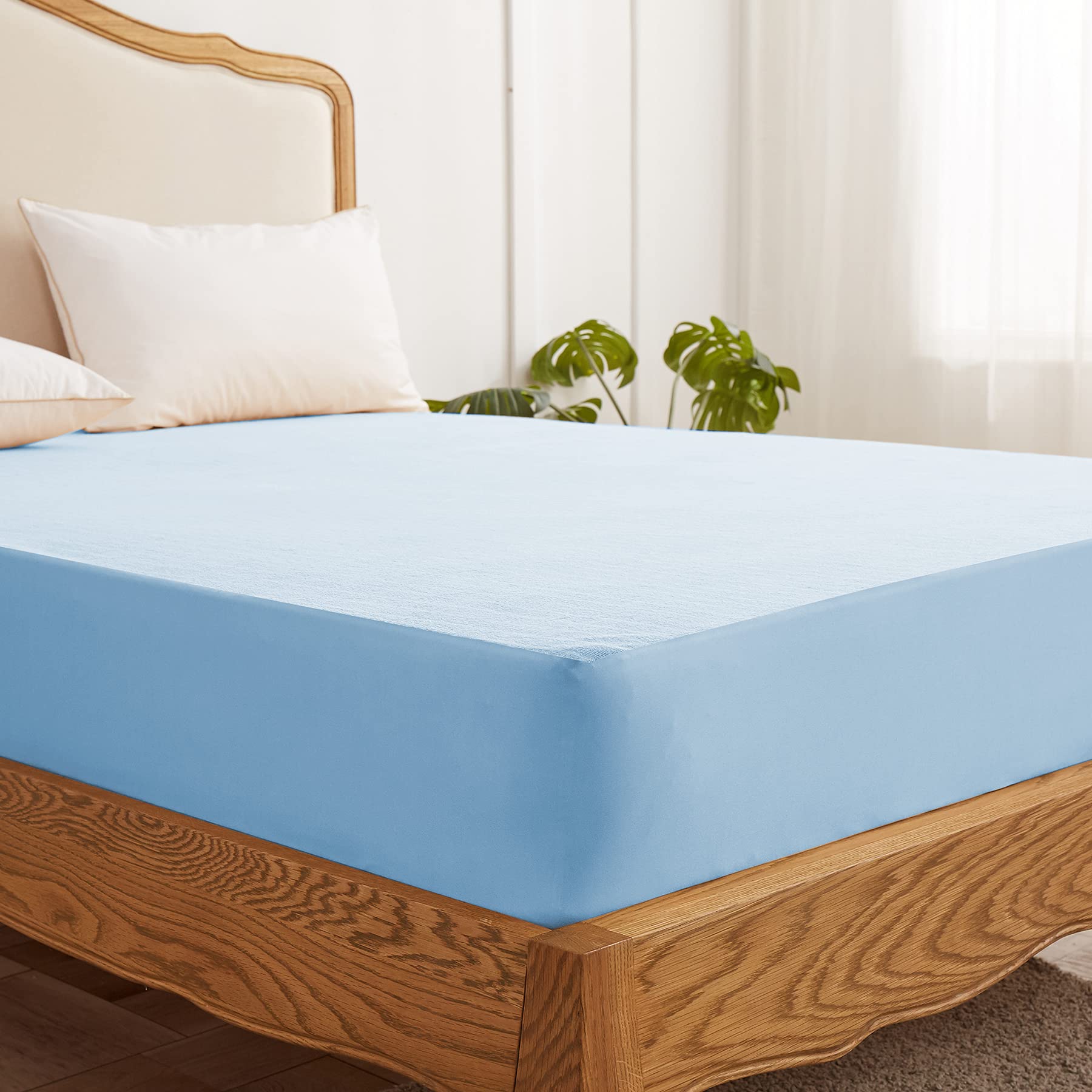 360°全周保護:箱型でしっかりとマットレスを包み、着脱簡単です。側面は幅35cm弾性メッシュクロスで360°マットレスを包み、滑り止めできます。ベッド、マットレス、 敷き布団にぴったりフィットして、いろいろ使えます。寝ている間で自由に寝返っても大丈夫です。朝シーツの整理時間を節約できます。