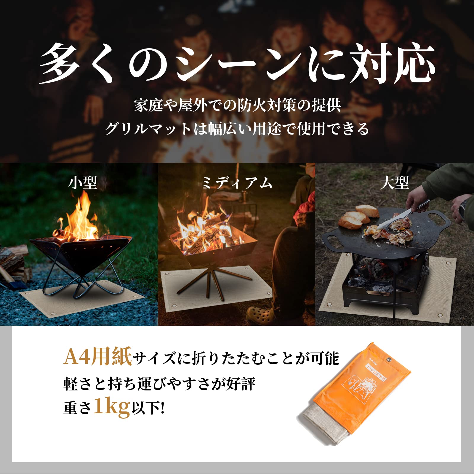 【耐火性がより強い】たきび台シートは直径がより細い8umガラス繊維採用し,難燃性と空気密度は普通の焚き火台シート高く、作業の耐熱温度は550℃で、瞬間使用温度は800-1300℃に達します。