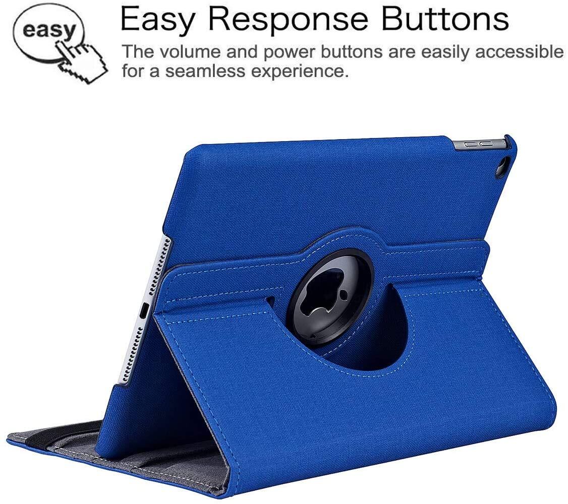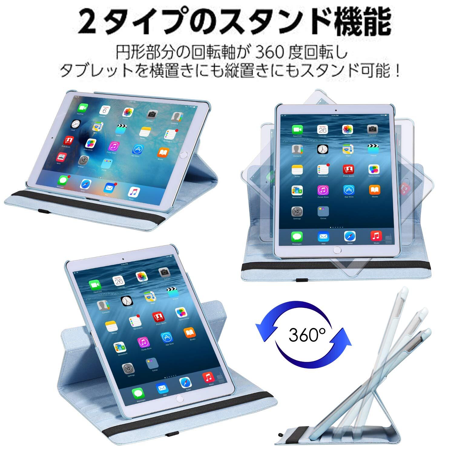 JXCX iPad 9.7 2018/2017ケース 新型(Newモデル)/iPad Air/iPad Air2カバー iPad 9.7インチ(第6、5世代)軽量 手帳型 360度回転スタンド オートスリープ機能 3段階調節可能 固定バンド 脱落防止耐衝撃 耐久性 おしゃれデニム生地 (ネイビー)