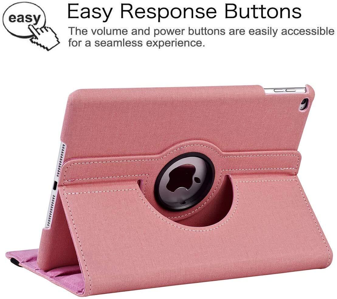 JXCX iPad 9.7 2018/2017ケース 新型(Newモデル)/iPad Air/iPad Air2カバー iPad 9.7インチ(第6、5世代)軽量 手帳型 360度回転スタンド オートスリープ機能 3段階調節可能 固定バンド 脱落防止耐衝撃 耐久性 おしゃれデニム生地 (ピンク)