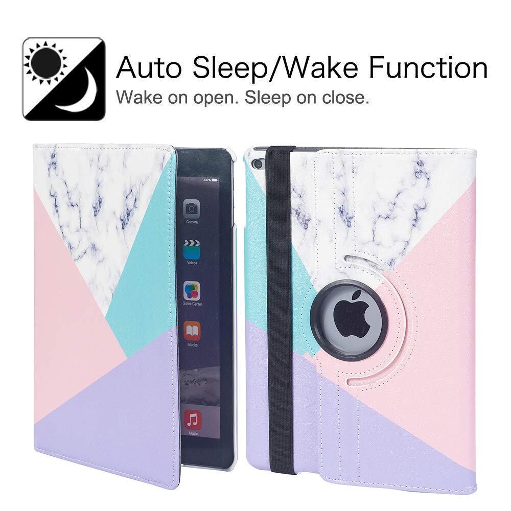 【在庫処分】iPad 9.7 2018/2017ケース 新型(Newモデル)/iPad Air/iPad Air2カバー iPad 9.7インチ(第6、5世代)軽量 手帳型 360度回転スタンド オートスリープ機能 3段階調節可能 固定バンド 脱落防止耐衝撃 耐久性 おしゃれ (ピンクの大理石) | asaRulu0511