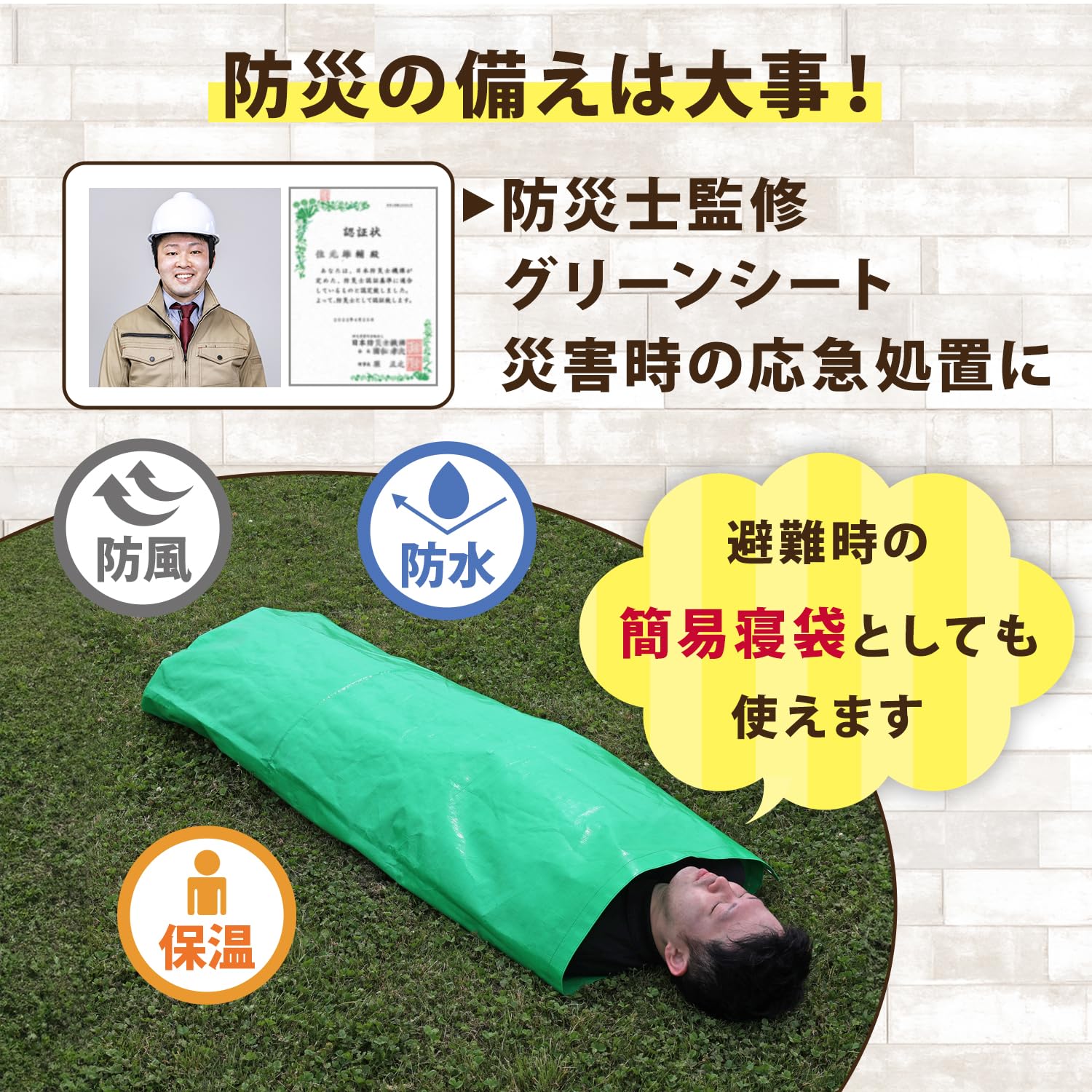 【養生シートや飛散防止カバーなどとして】:園芸や農業、建築・工事現場での養生シート、災害時の飛散防止カバーなどとしても使える。