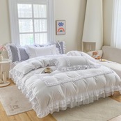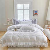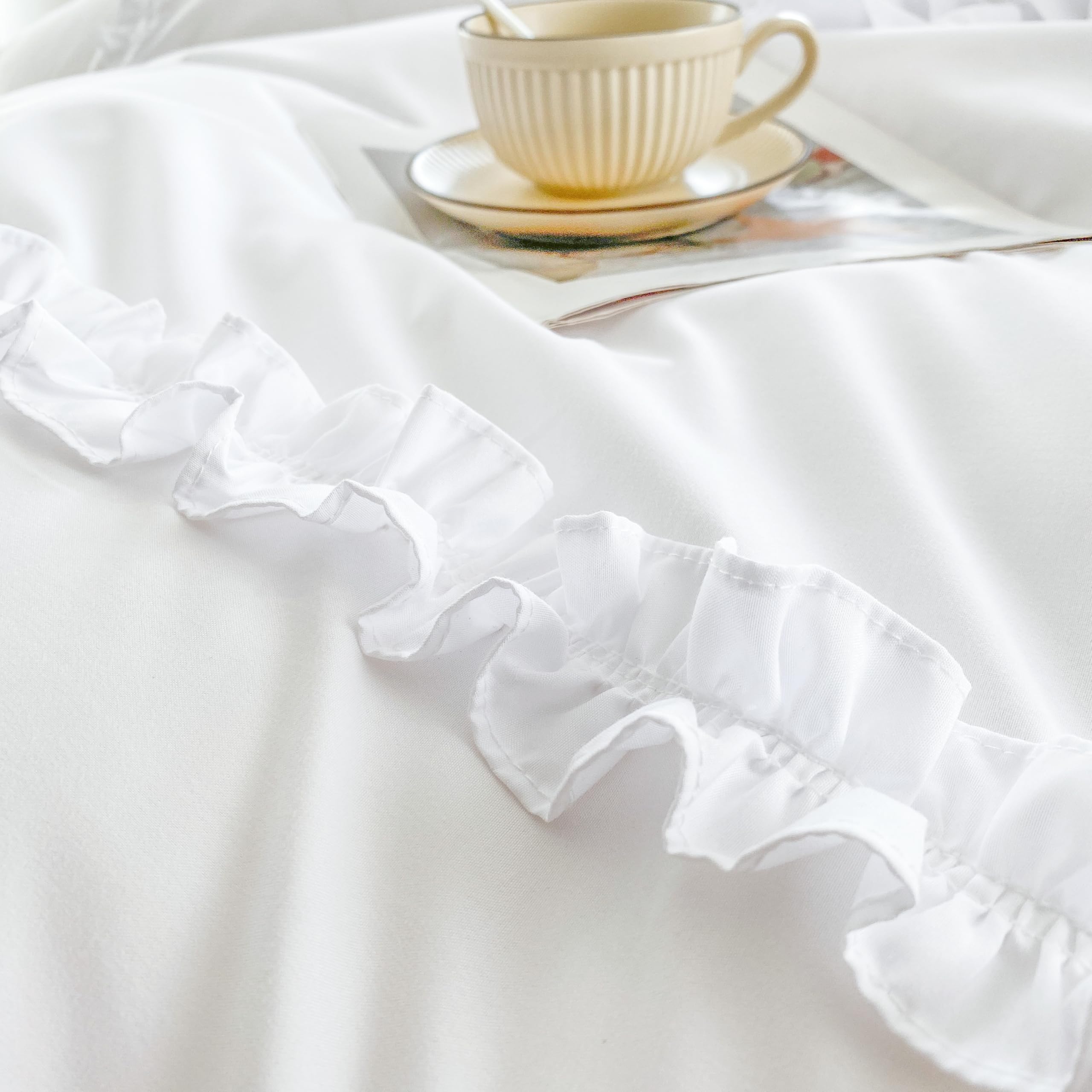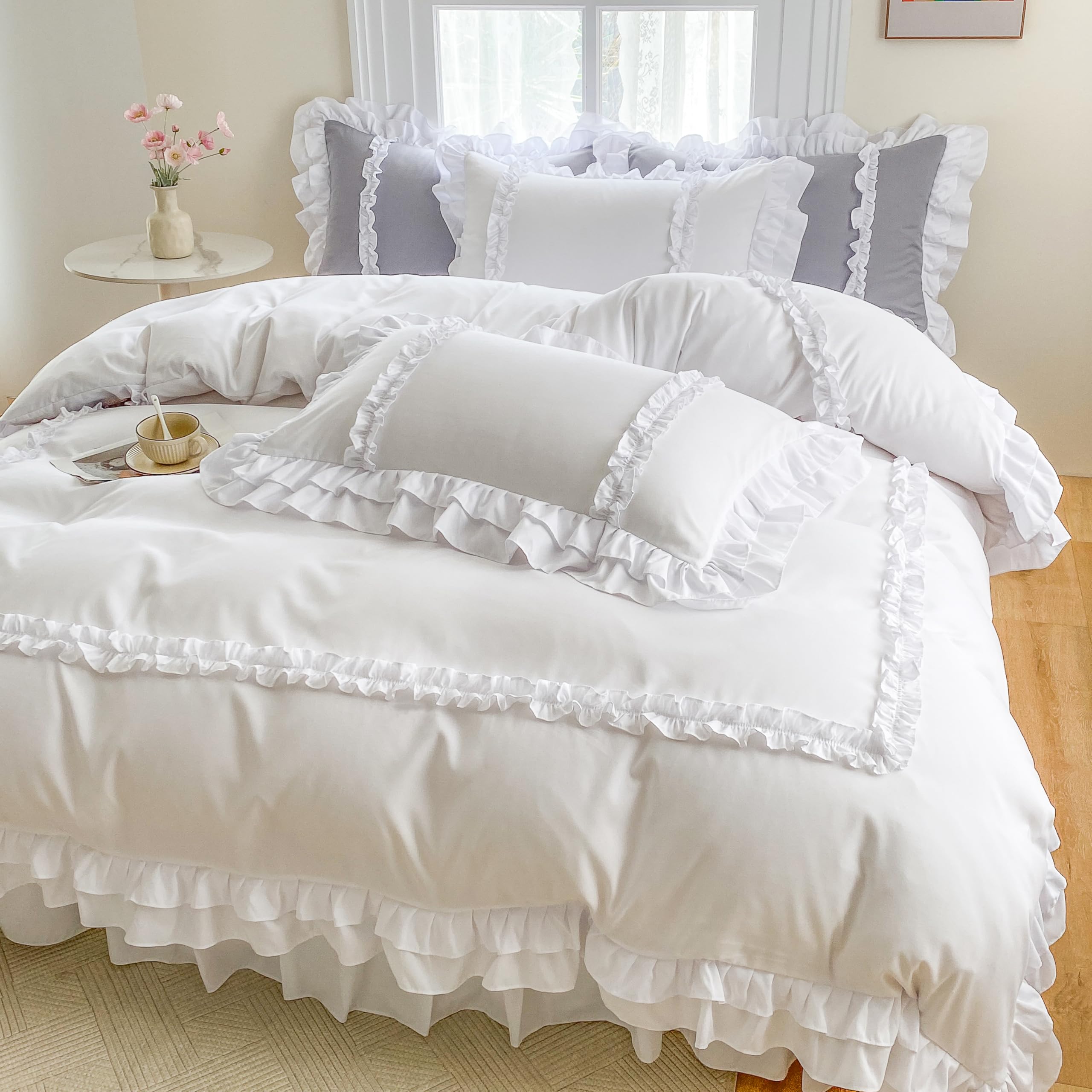 【セット内容と仕様】:掛け布団カバー フリル(1枚)・150X210cm、ベッドスカート(1枚)・100X210+45CM、枕カバー(1枚)・46X63CM