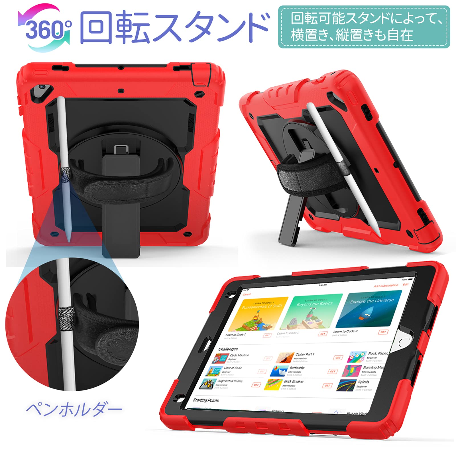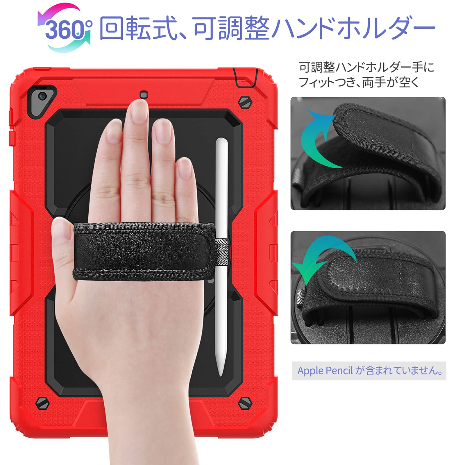 【新春セール】Timecity iPad 9.7 ケース 第6世代/第5世代 2018/ 2017モデル iPad Air2 ケース 保護フィルム内蔵 360度回転の自立収納式スタンド 肩掛け ショルダーベルト ハンドストラップ付き ペン収納 耐衝撃 頑丈 丈夫 使いやすい 携帯便利 防塵 頑丈 現場 工事 多機能 iPad Pro 9.7インチ タブレットPCケース (レッド)