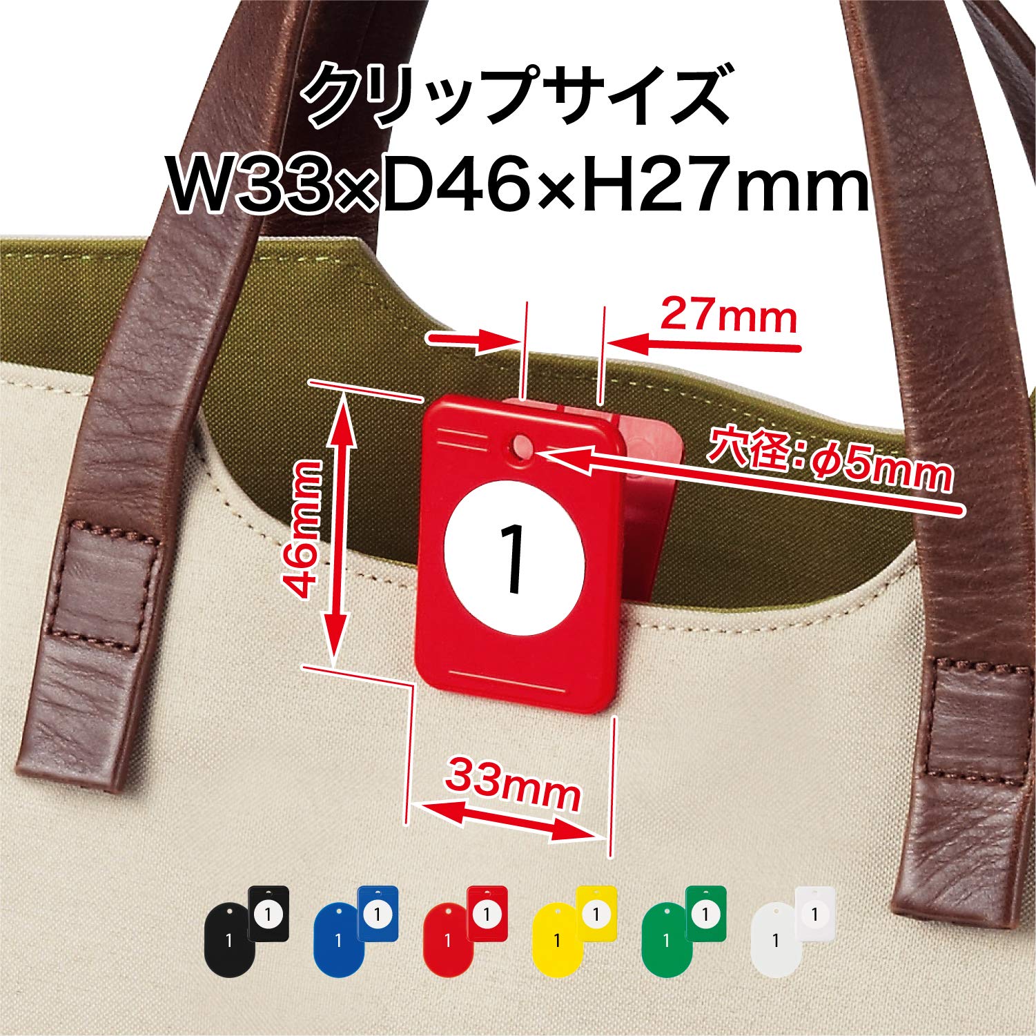 【サイズ】W33×D46×H27mm(クリップ) W40×D60×H2.7mm(番号札)