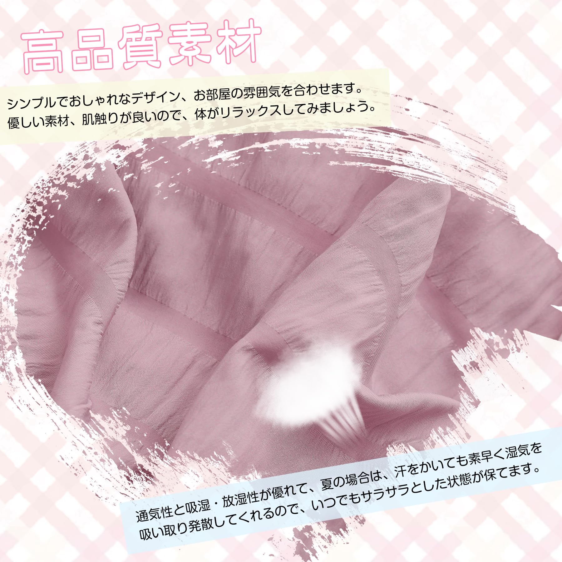 【シアサッカー生地 大人かわいい上品な フリル】 ポリエステル100%、綿素材と比べてシワになりにくく、シアサッカー生地で、肌触りが良く、快適で心地よくご利用いただけます。波のような縞ができていて柔らかな肌触りで1年中でご愛用いただけます。おしゃれで甘すぎない程よいフリル感に仕上げました。いつもの寝具にセットするだけで、お部屋を華やかに演出します。