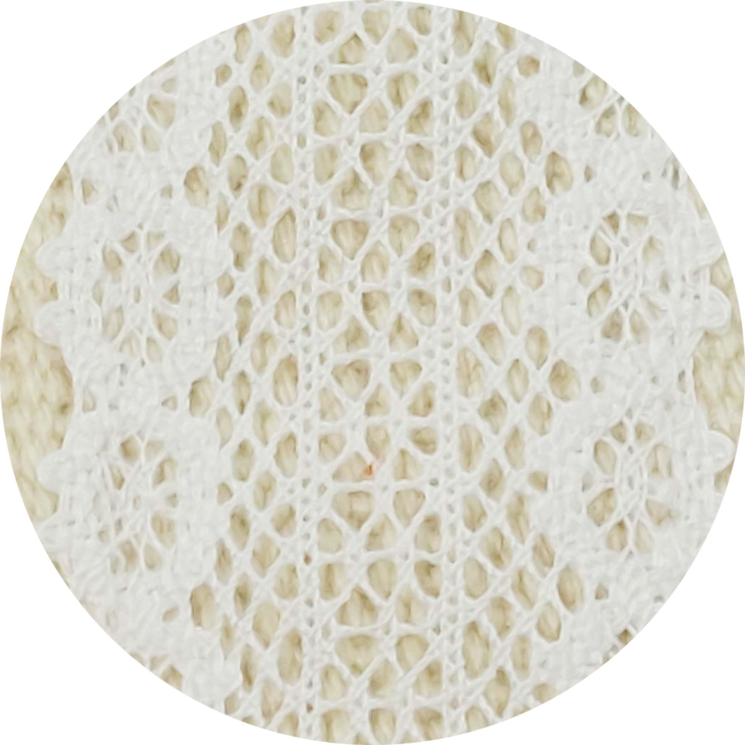 Daiking自社工房にて製造したカメラネックストラップレースフラワーベージュ。首にやさしいやわらかなアクリルテープを裏地に使用しています。