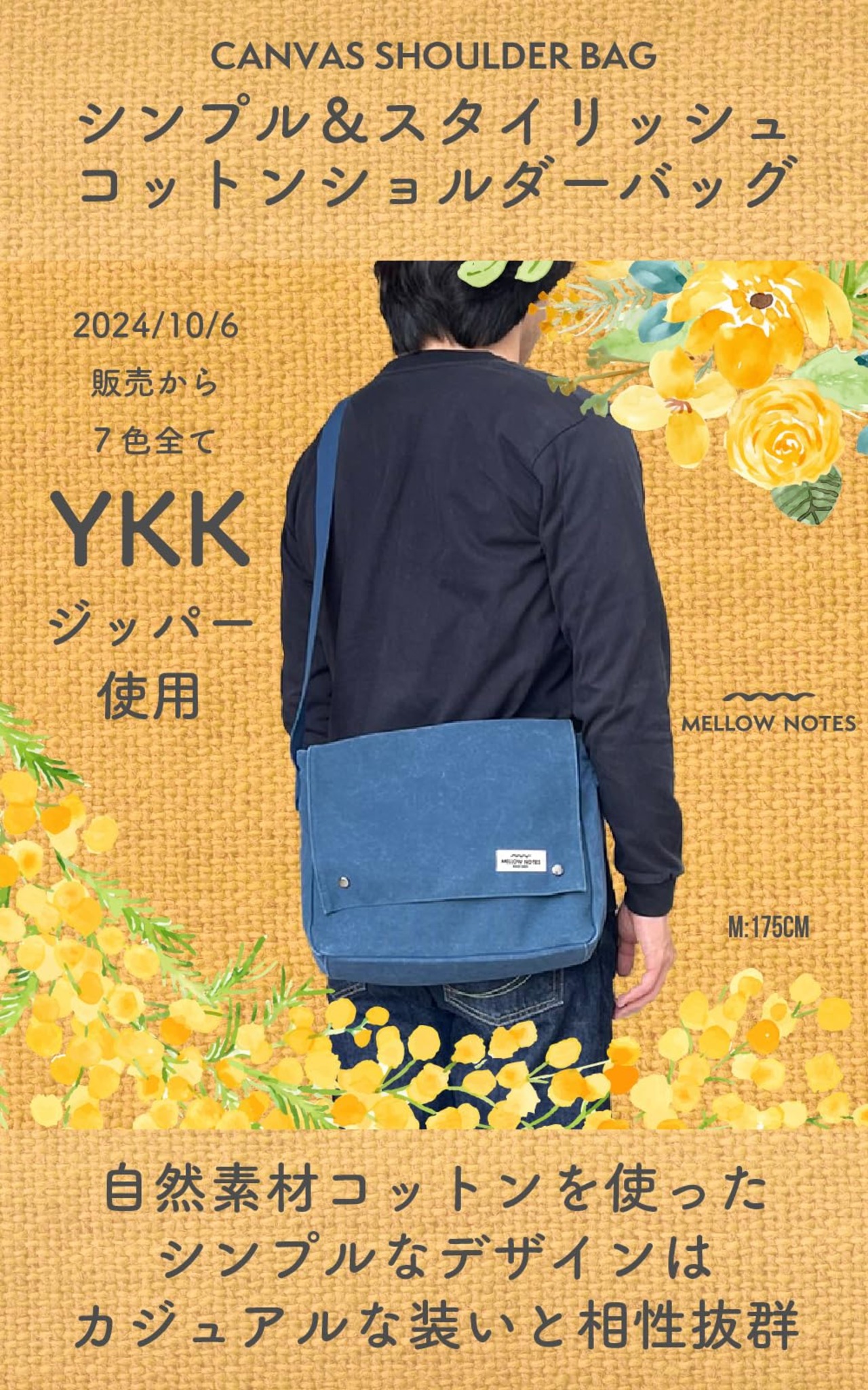 [MELLOW NOTES] [メローノーツ] ショルダーバッグ メンズ ショルダー バッグ 肩掛け メッセンジャーバッグ YKK 斜めがけ 帆布 キャンバス a4 シンプル カジュアル 人気
