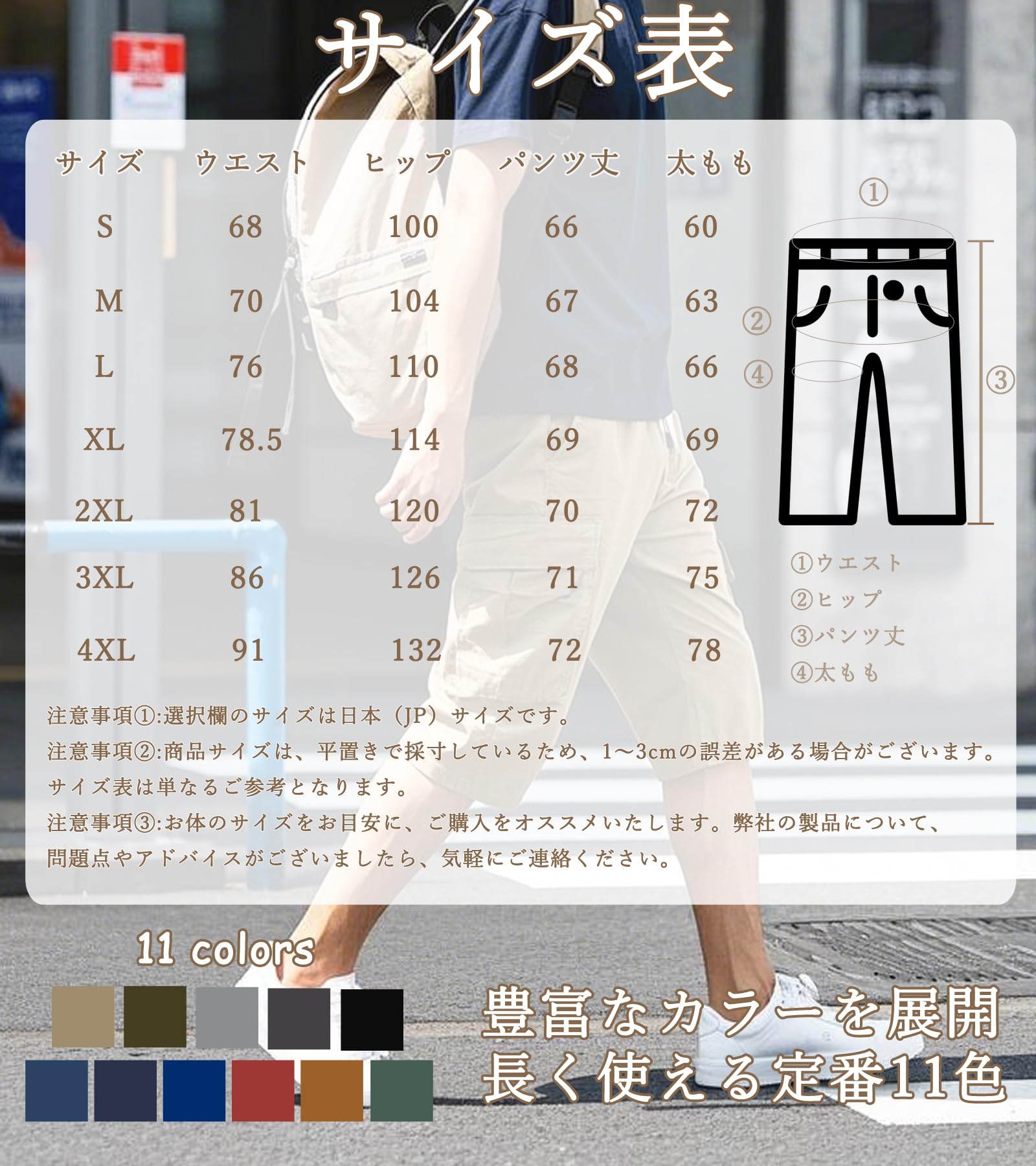 【メンズカーゴパンツ】仕様:①ベルトは付属しておりませんので、別途ご購入ください。②100綿(コットン)の薄手生地で、夏でも蒸れない爽やかさ。大きいサイズ(S-4XL)対応で、体型を選ばない着心地を実現。豊富なカラーを展開、長く使える定番11色