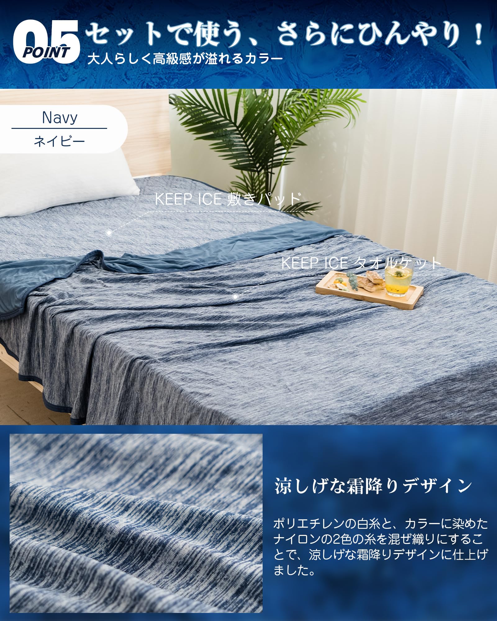 両面接触冷感 タオルケット 夏用 シングル Q-Max0.516 【KEEP ICE】リバーシブル クールケット 冷感ケット 140×190cm 24時間持続制菌消臭 除湿速乾 軽量 ひんやり 持続冷感 丸洗いOK ネイビー Mensu VKJ145-S-NV