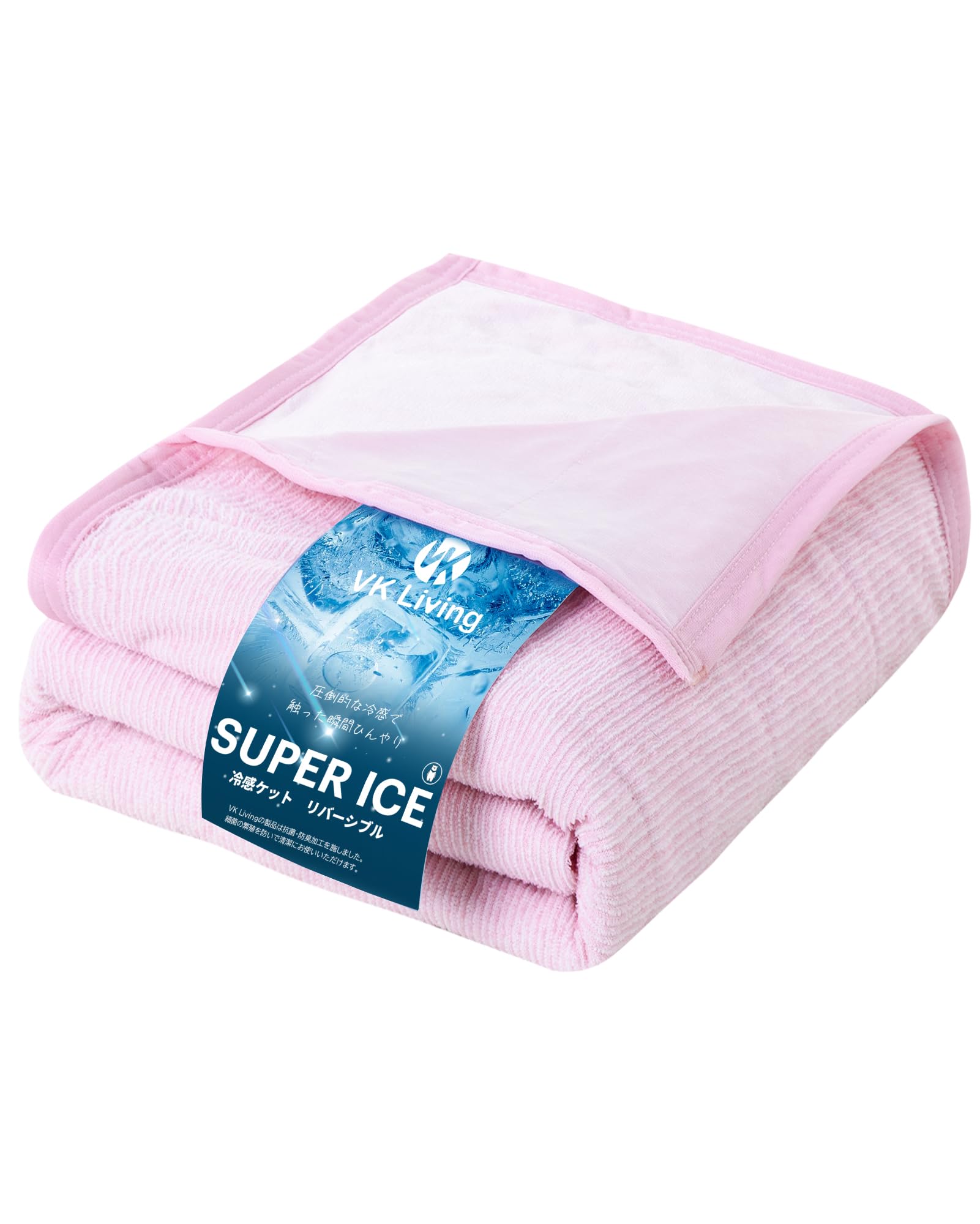 VK Living タオルケット 接触冷感 夏用 シングル リバーシブル 【SUPER ICE】 冷感&タオル地 140×190cm ひんやり 24時間持続制菌消臭 除湿速乾 軽量 丸洗いOK たおるけっと 冷感ケット クールケット ピンク VKJ013-S-PK1