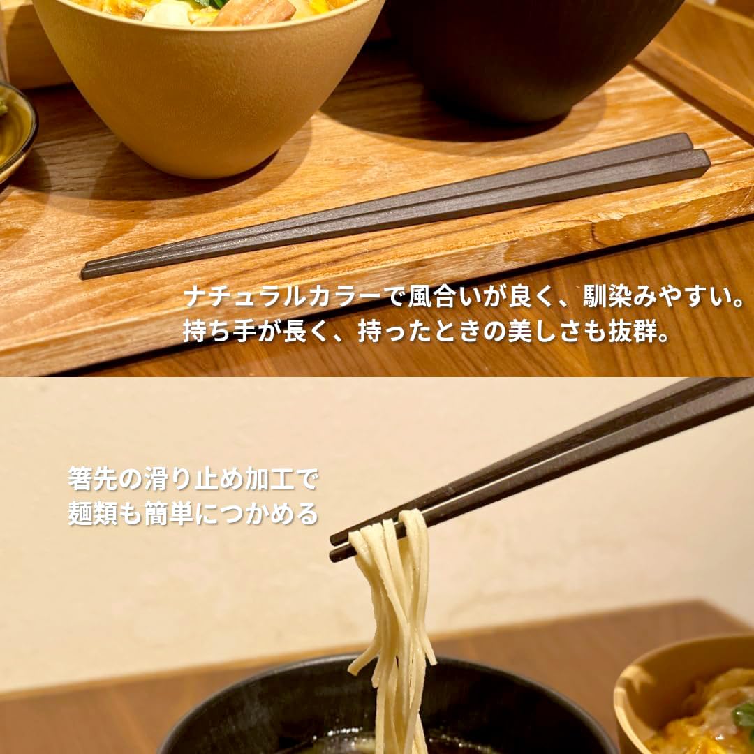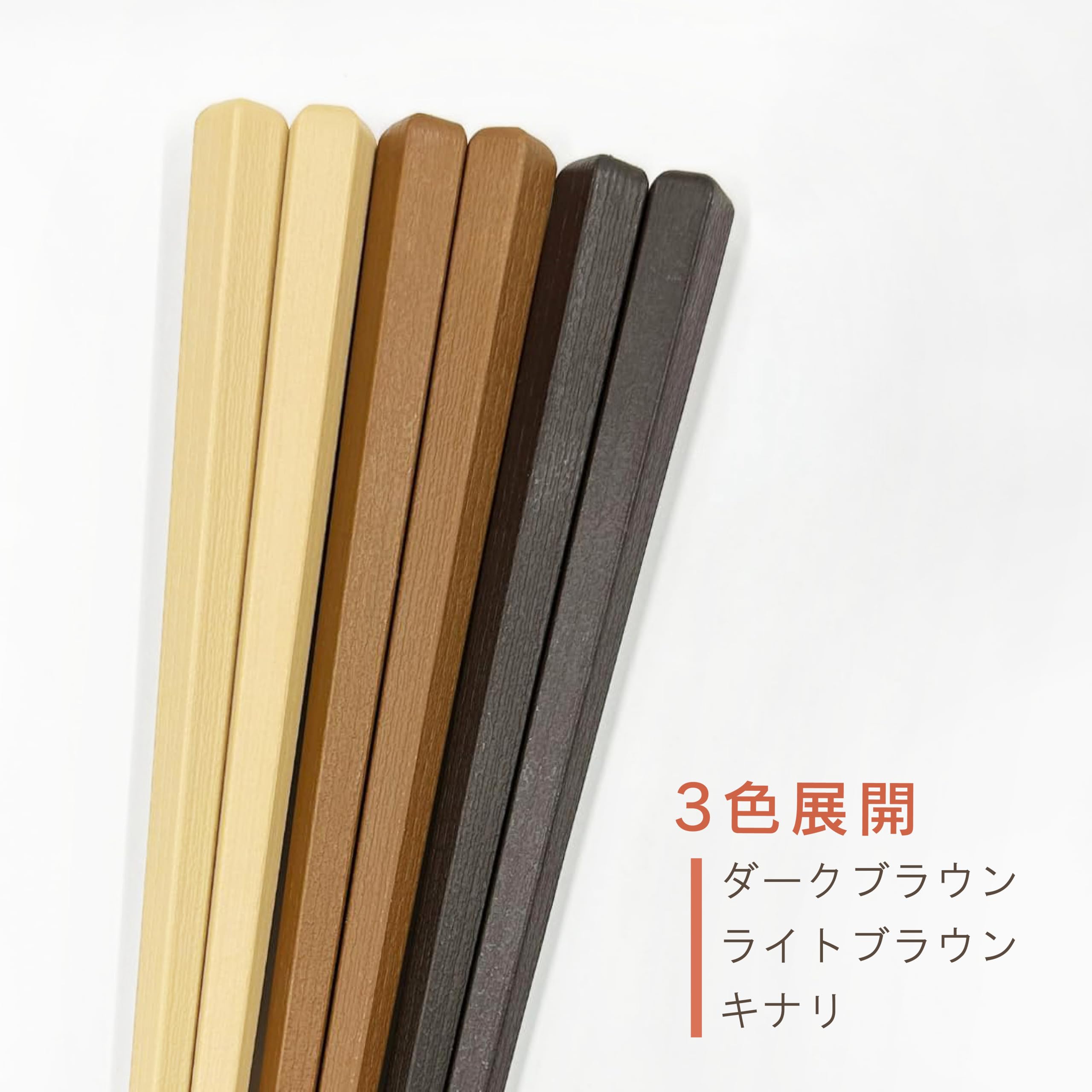 木目五角箸 【日本製】 食洗機対応 23cm 太目で握りやすい 大人用 耐熱 樹脂製 ペア 先角 滑り止め付 和モダン シンプル お洒落 (ライトブラウン 2膳)