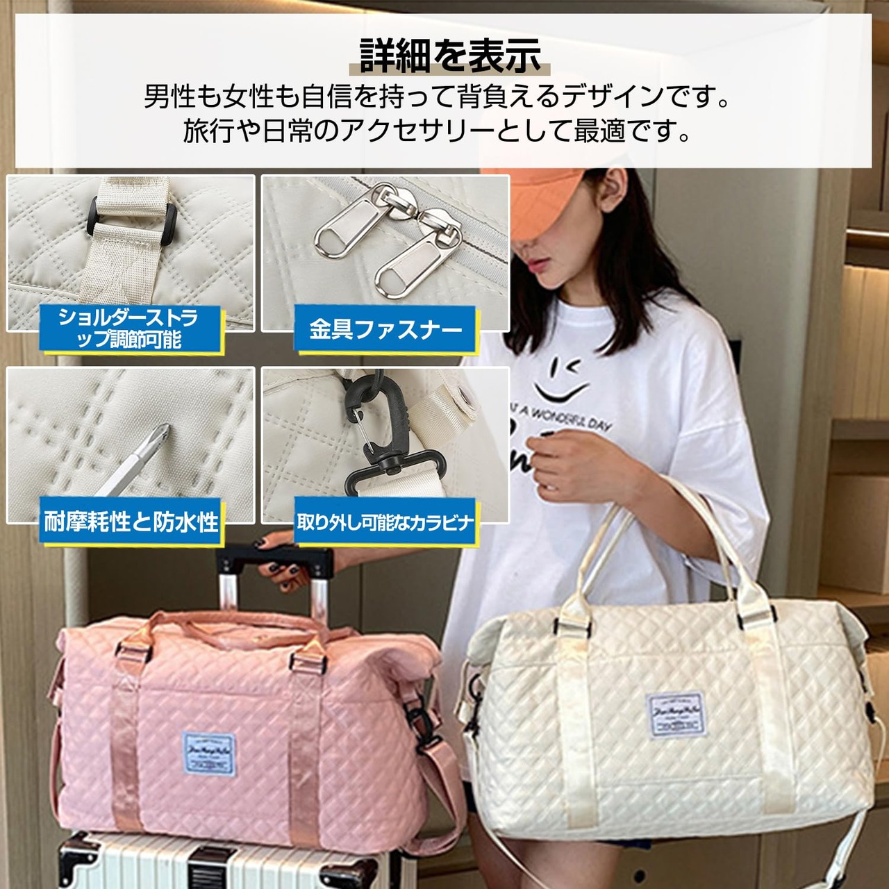 【4WAY使い方-最高の贈り物】ボストンバッグには取り外し可能なショルダーストラップが付いています。したがって、このバッグはショルダーバッグまたはクロスボディバッグとして使用できます。もちろんショルダーストラップを外して手持ちトートバッグとしてもお使いいただけます。このトラベルバッグはスーツケースのポールにも固定できるので、旅行の際にとても便利です。同時に、これは最高の贈り物でもあり、誕生日でも休日でも、非常に適しています。