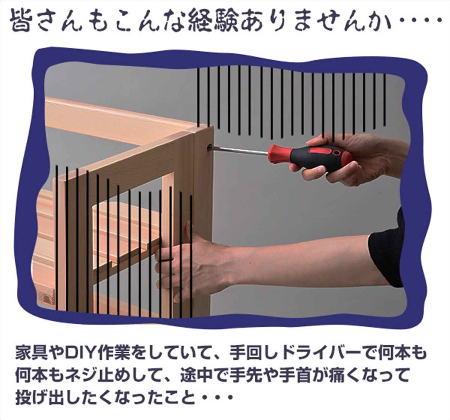 【軽量でコンパクト】ホームドライバーは軽量でコンパクトなサイズなので、持ち運びがしやすく、狭いスペースでも楽々作業が行えます。どこでも手軽にお使いいただけます。