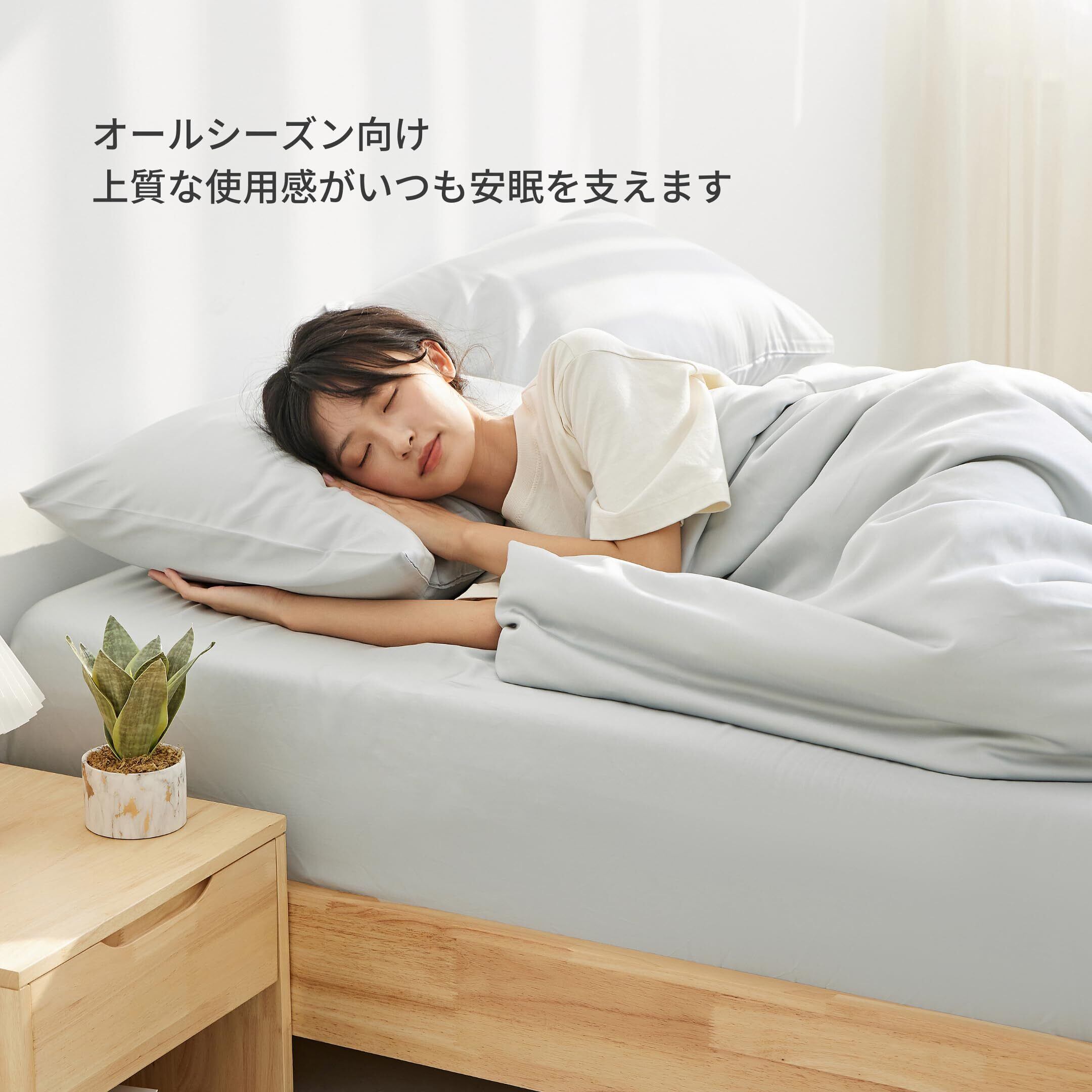 【オールシーズン向け】コットンサテンは通気性と吸湿性に優れ、睡眠中にかく汗をやさしくコントロールします。柔らかくなめらかで上質な使用感が1年を通して安眠のお手伝いをします。