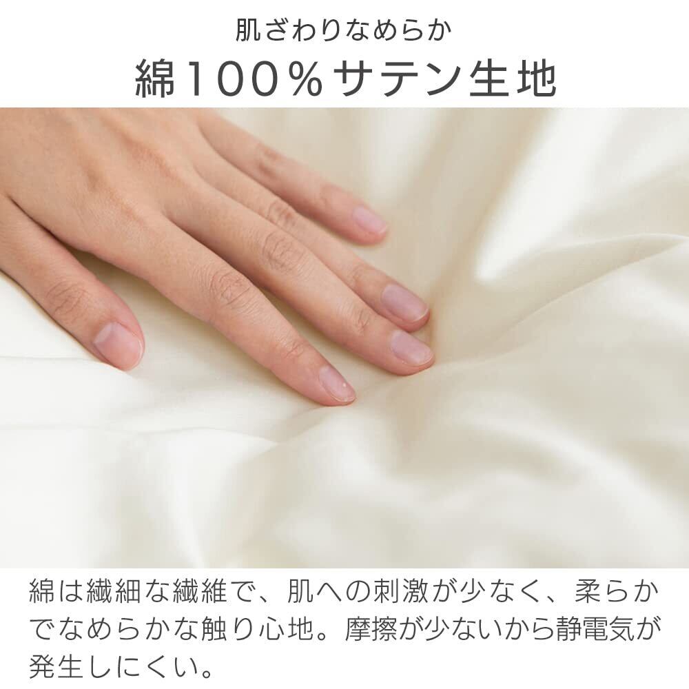 【極上の触り心地】アイリスオーヤマのボックスシーツは、綿100%のサテン生地を使用しており、なめらかで肌に優しい感触が特徴です。心地よい眠りをお届けし、赤ちゃんやペットがいるご家庭でも安心してお使いいただけます。