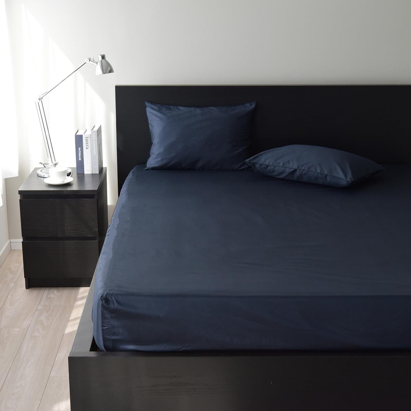 【人気商品】ボックスシーツ 日本製 クイーン 綿100% サテン350本高密度生地 防ダニ ベッドシーツ シルクのような肌触り 北欧 おしゃれ 超長綿 北欧 ホテル仕様 ノーブル (クイーン 160×200×30cm, インディゴネイビー) | asaRulu0511