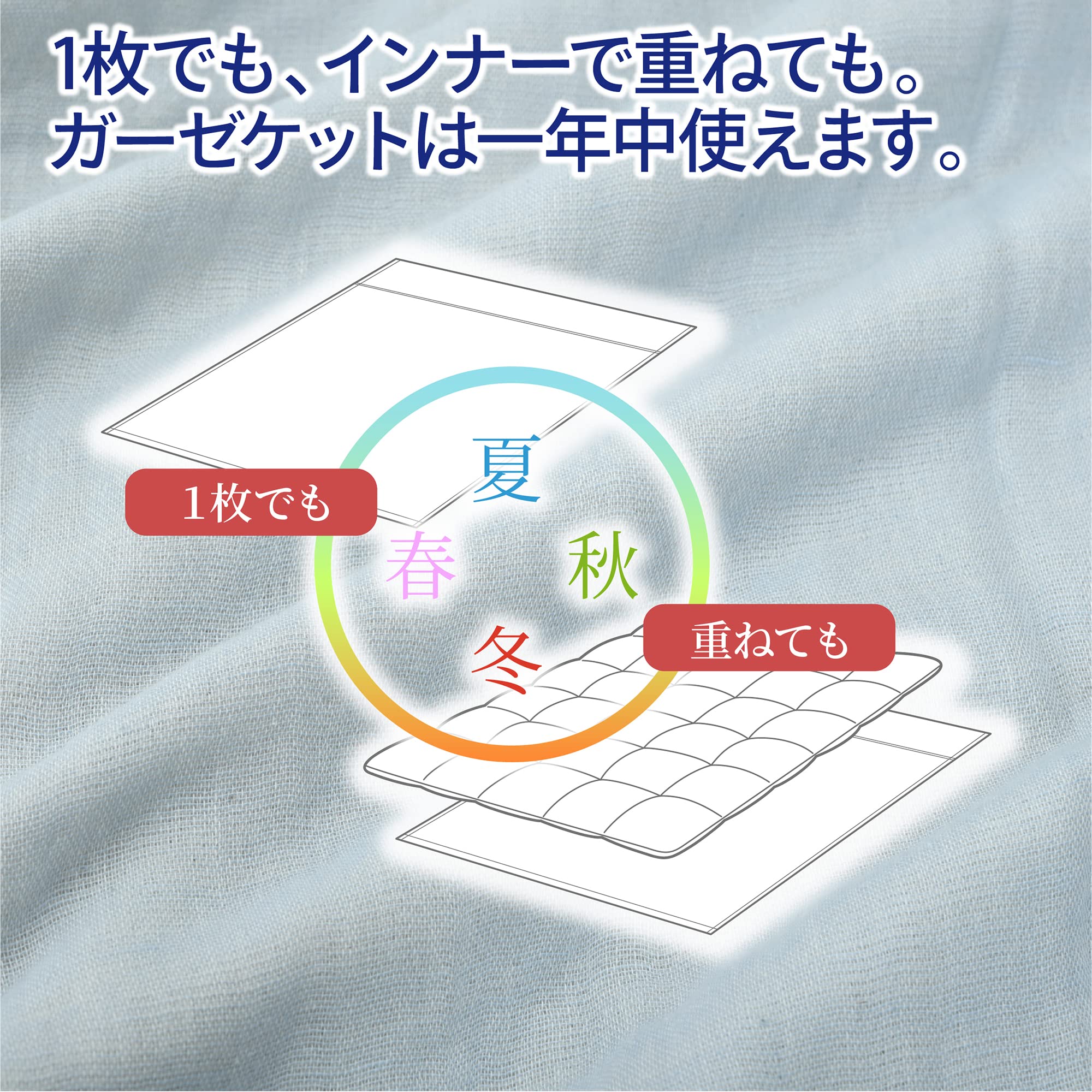 3重に重ね織られた柔らかいガーゼが空気をたっぷり含み適度な保温性を持ちながら汗などの水分も素早く吸湿発散。さらっとして気持ちよくお使いいただけます。