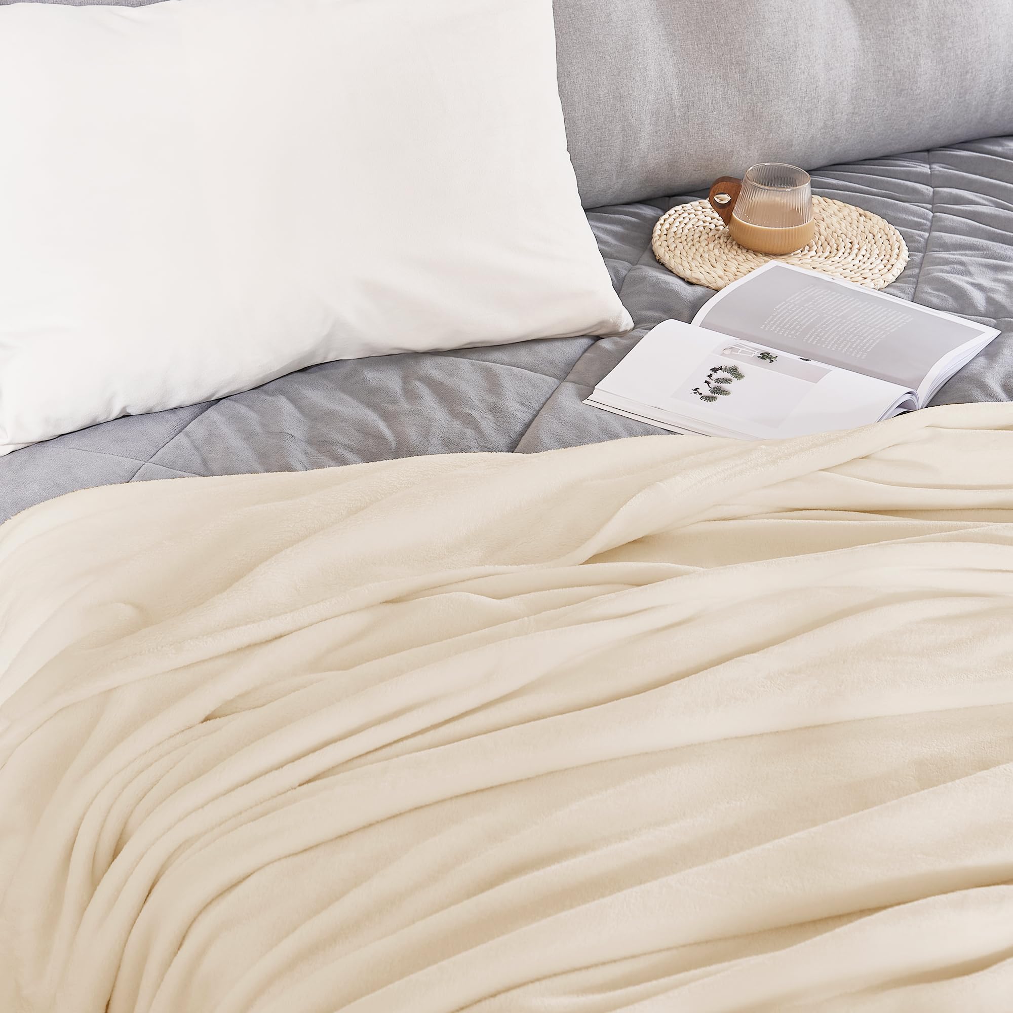 NICETOWN タオルケット 冬用ブランケット 毛布 フランネル しきぱっと シングル 冬 ひざ掛け もうふ 冬用かけ布団 秋冬 温かい 静電気防止 洗える マイクロファイバー クリーム 140*200cm