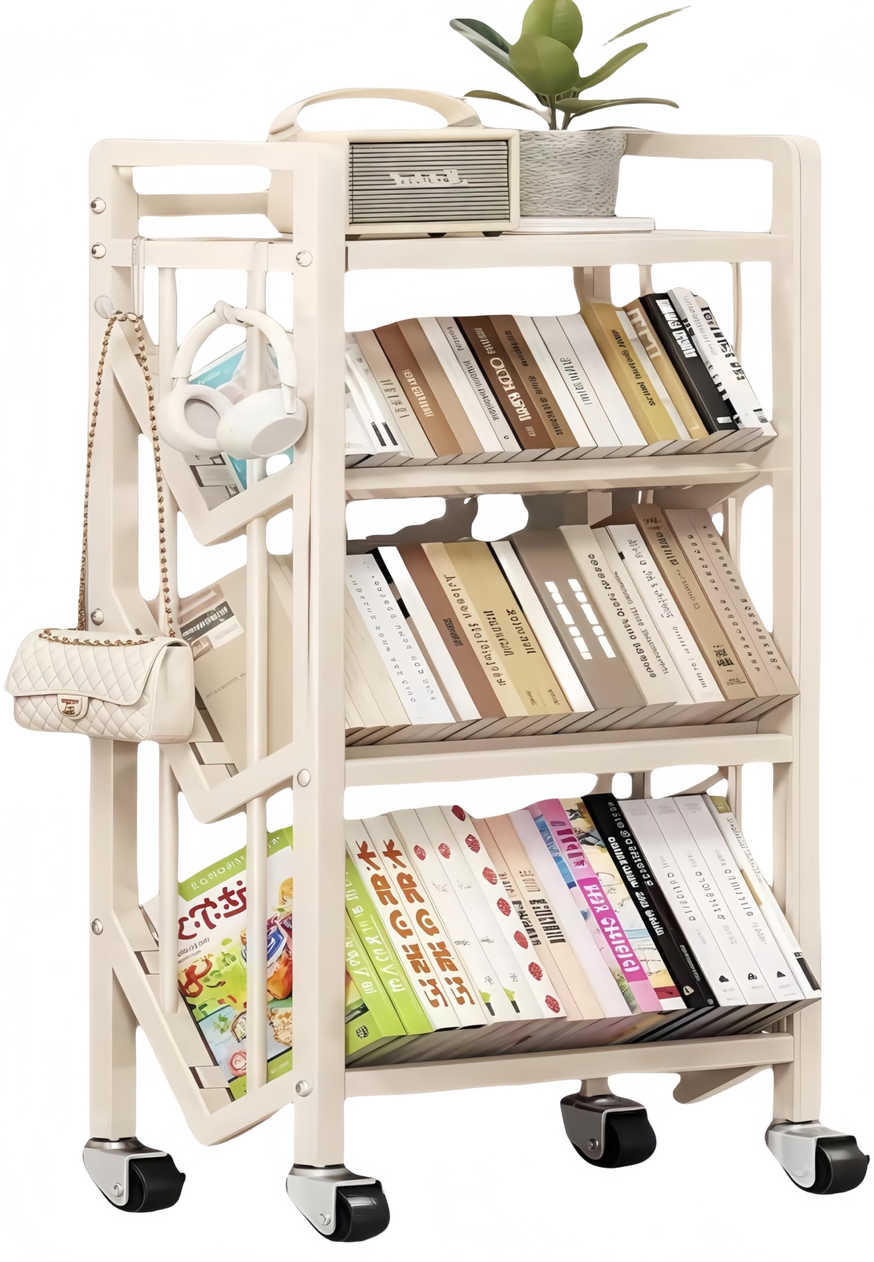 TUIYIDUO ファイルラック ファイルワゴン 4段 本棚 幅50cm×高さ118.5cm 回転キャス 回転キャスター付き 制動可能 スチール製 大容量 本ラック 書類整理 教科書 漫画 雑誌 収納棚 斜め棚 出し入れしやすい 組み立てが簡単 日本語説明書付き ホワイト