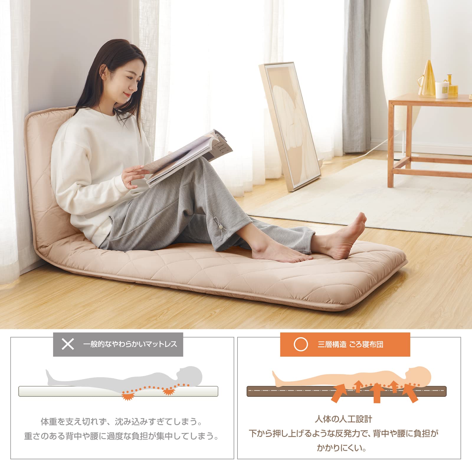 長座布団 68×180cm ごろ寝マット 軽量 ごろ寝座布団 お昼寝マット 大人 抗菌 防臭 防ダニ 体圧分散 底付き感無し 三層構造 ごろね ベージュ
