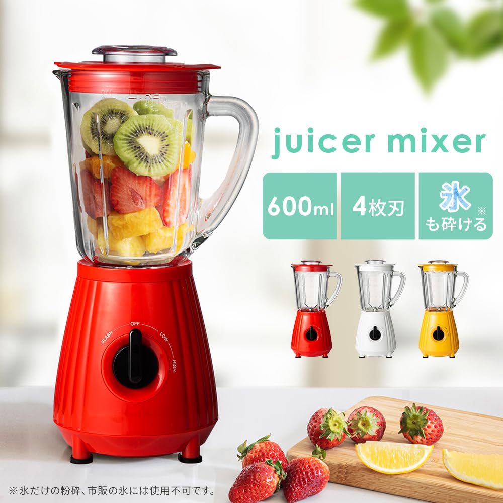 アイリスプラザ(IRIS PLAZA) ミキサー ブレンダー ハイパワー ジューサー 簡単操作 3段階調整 氷対応 4枚刃 スムージー フローズンドリンク 丸洗い 大容量サイズ おしゃれ レッド 滑り止め付き PFJM-600-R