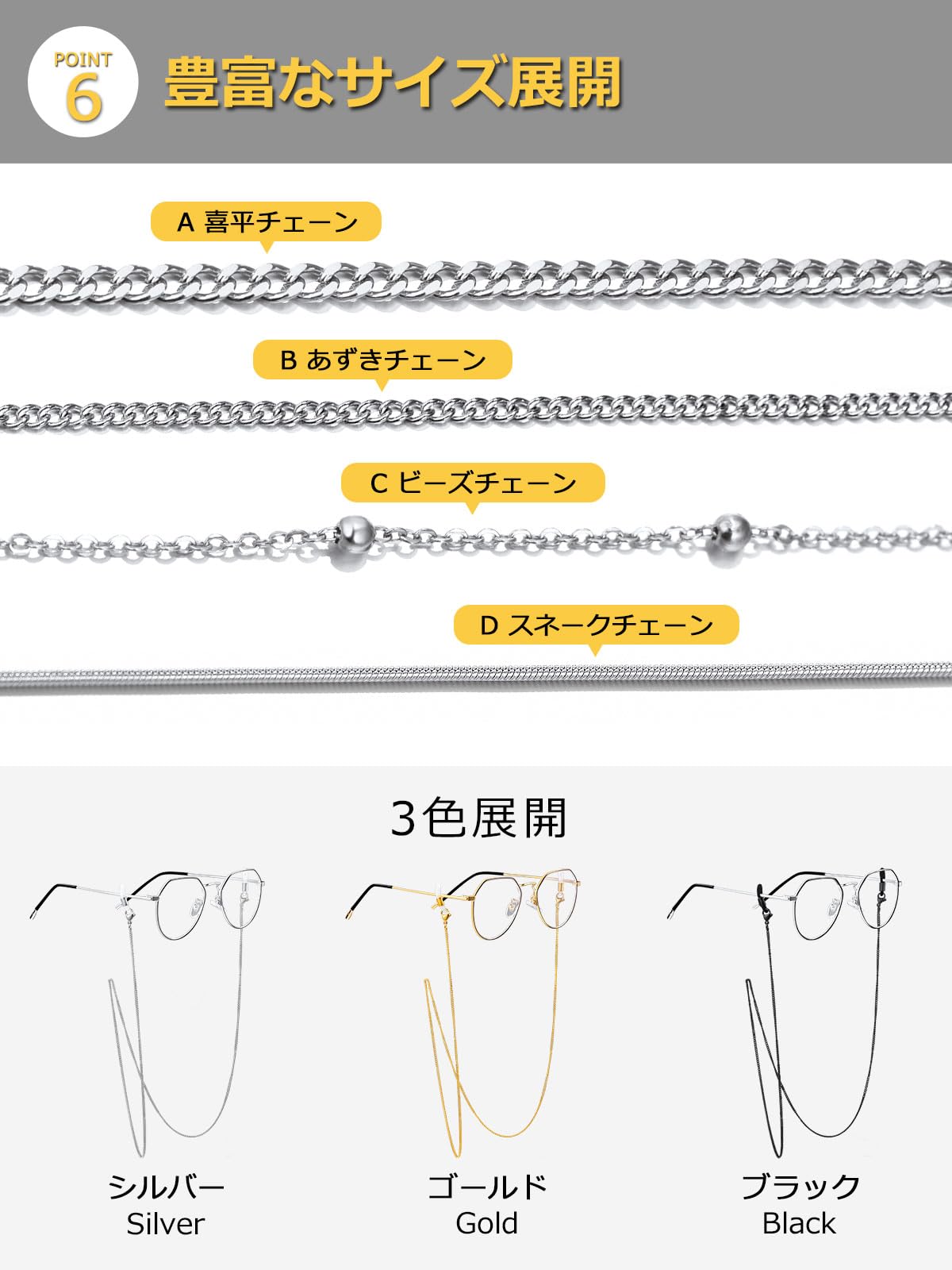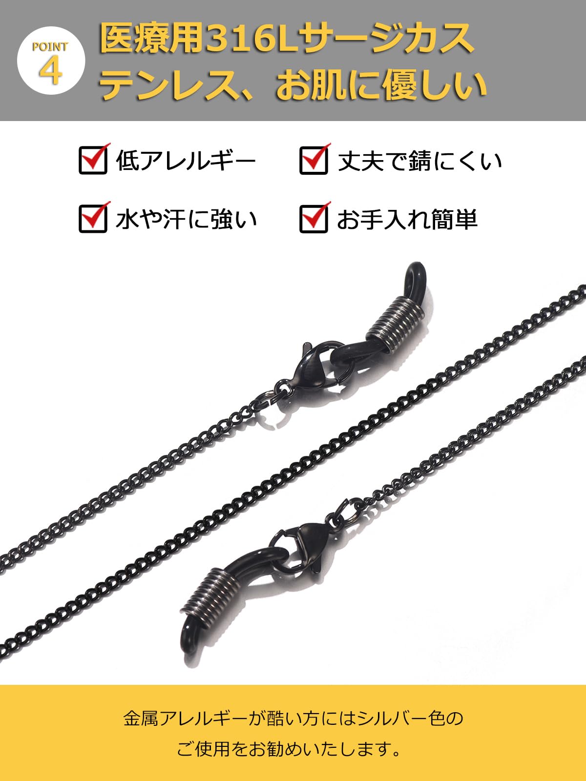 【数量限定】[ChainsPro] メガネチェーン レディース おしゃれ 眼鏡マスクストラップ メンズ ブラック ステンレス サングラス 落下防止 幅1.8mm あずきチェーン